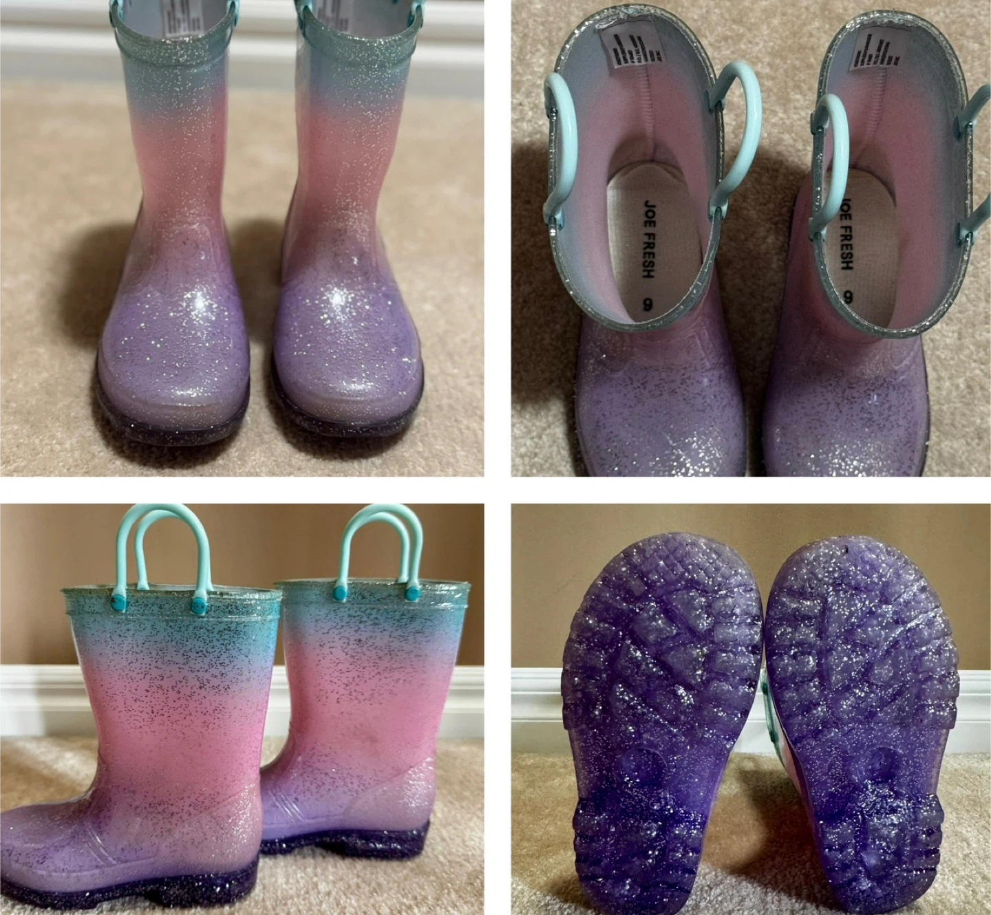 - Joe Fresh Glitter Rain Boots, Size 9