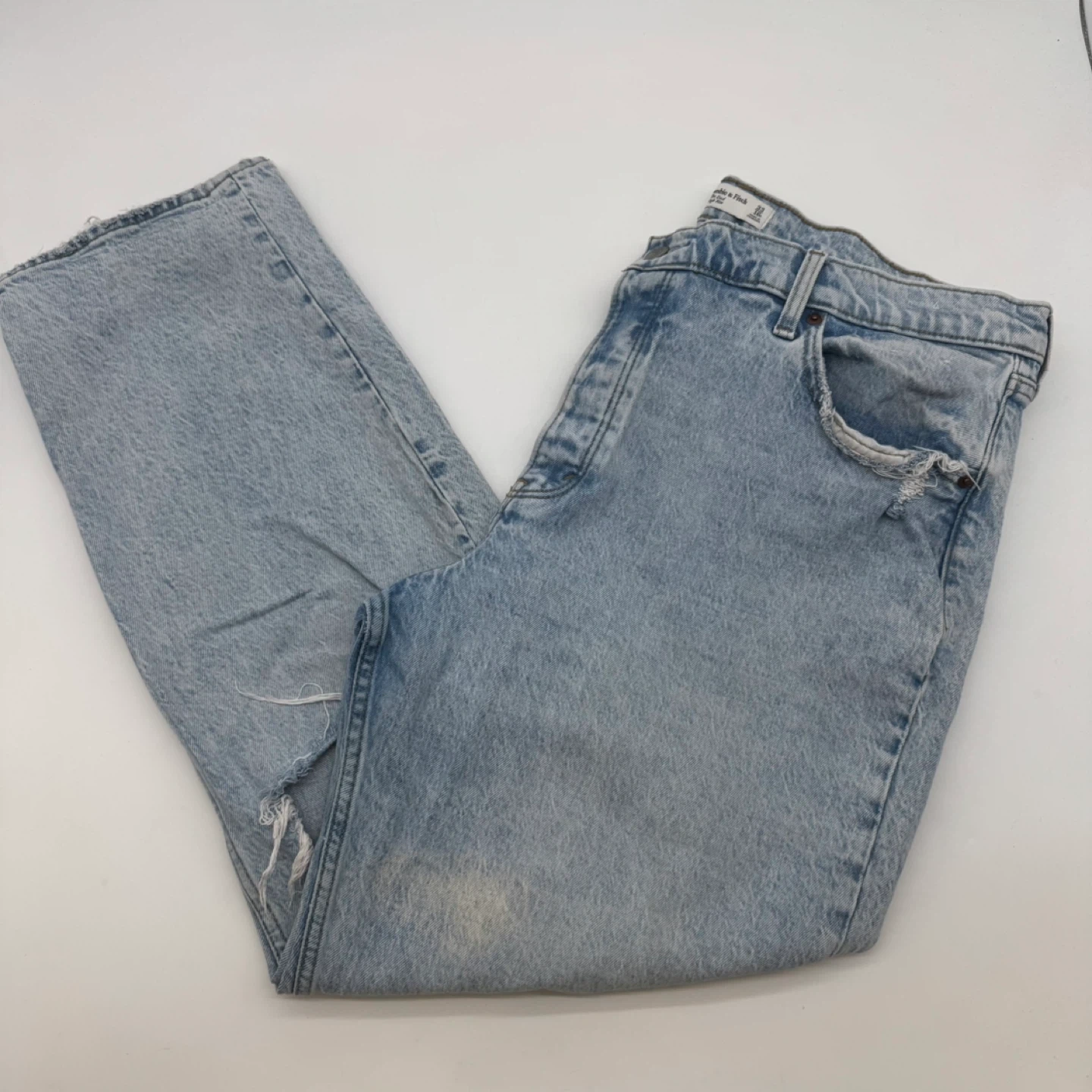 Stylish Abercrombie & Fitch "The Dad" High Rise Jeans in light blue wash.