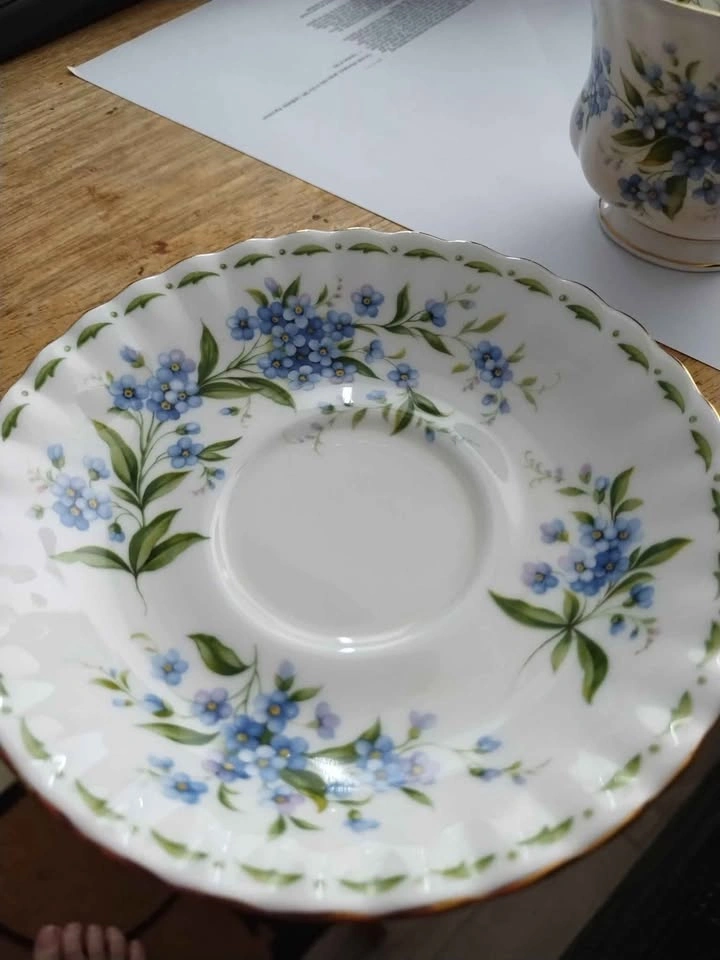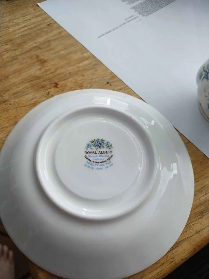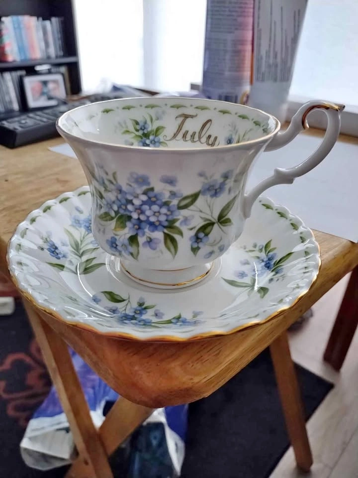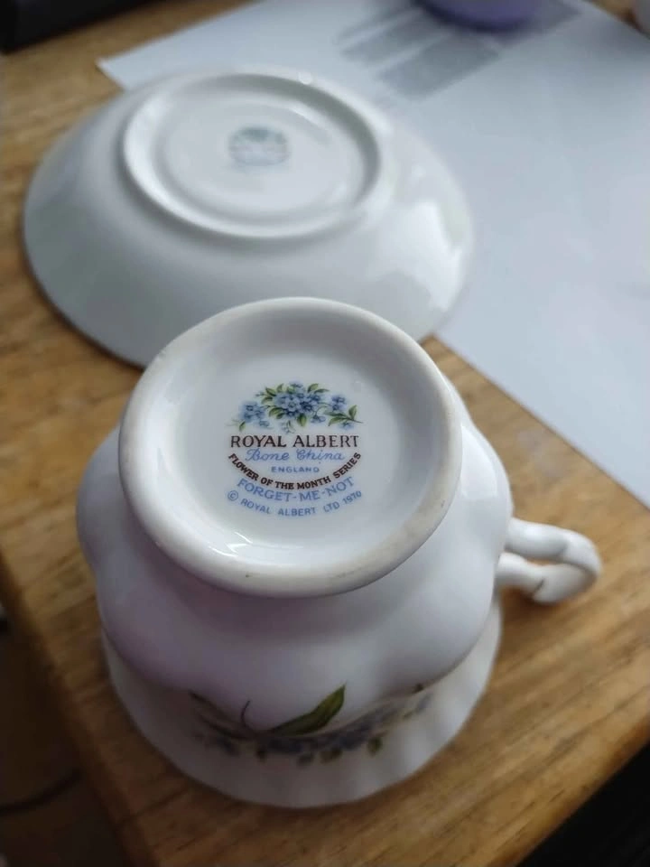 10Step into the enchanting world of July with the Royal Albert Vintage Flower of the Month July Forget-Me-Not Duo. Crafted in England, this charming duo pays homage to the delicate and symbolic Forget-Me-Not flower, the beloved bloom of July. Forget-Me-Nots are associated with remembrance, love, and fidelity. These delicate blooms are said to represent true and everlasting love, as well as the cherished memories shared between loved ones. Good condition with no chips, cracks, or loss of gilding. Made in England. Pickup at Main Street Subway Station or Danforth GO Station.