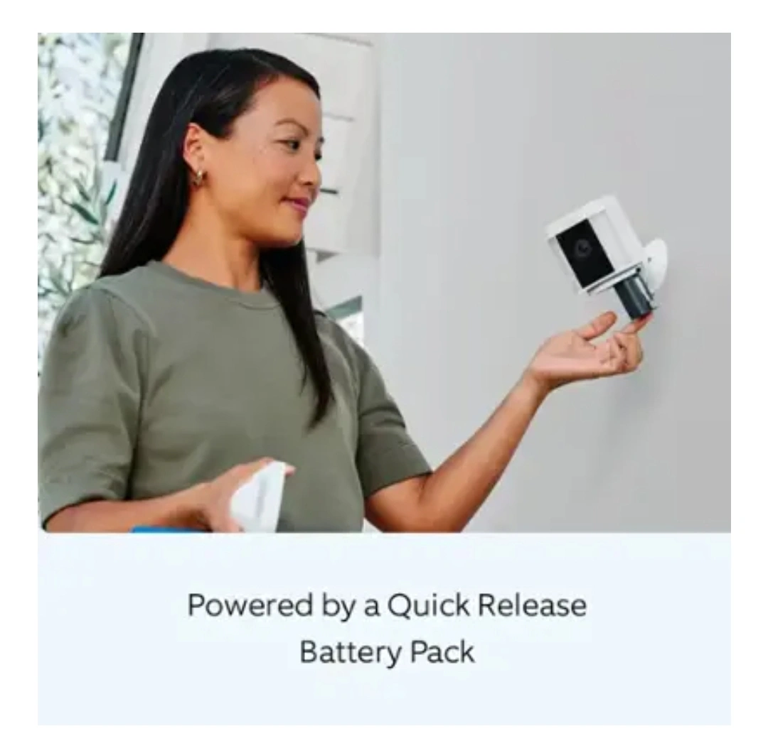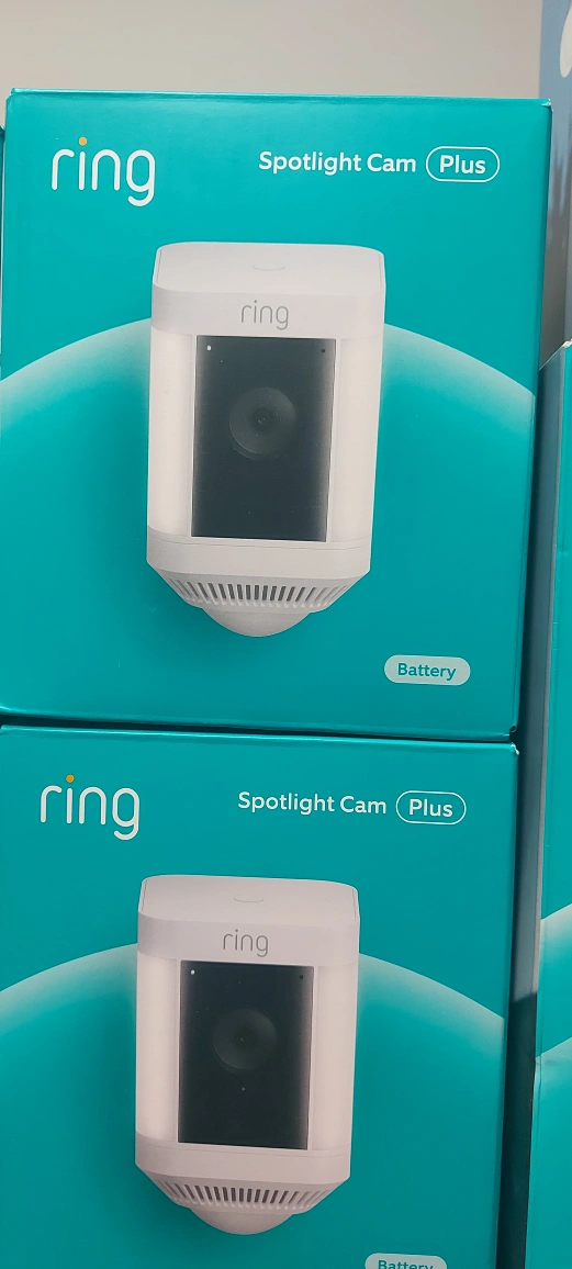 65Ring Spotlight Cam Plus Outdoor/Indoor Wireless 1080p Battery Surveillance Camera - White Amazon AlexaRingRing Watch over your home day or night in wide-angle, 1080p HD video with Color Night Vision and check in at anytime with Live View. Stop intruders in their tracks with 2 motion-activated LED spotlights that turn on when they detect motion, and sound the built-in 105dB siren with just a few taps. Get real-time notifications whenever motion is detected. Or get more detail with Person Alerts. Ring Home subscription required, sold separately. Motion Zones Customizable motion zones let you choose exactly what your camera covers—so you only get notified about what matters most. Power Easily power your device with the Quick Release Battery Pack. Two-Way Talk Talk to guests anytime, from anywhere with Two-Way Talk. Person Alerts Record all your videos, review what you missed for up to 180 days*, get Person Alerts, use Smart Video Search to help you find that one moment in all your motion events**, and more, with an eligible Ring Home Plan (subscription sold separately). Alexa Works with Alexa so you can hear audio announcements when motion is detected. BRAND NEW With WARRANTY EASY FINANCING AVAILABLE