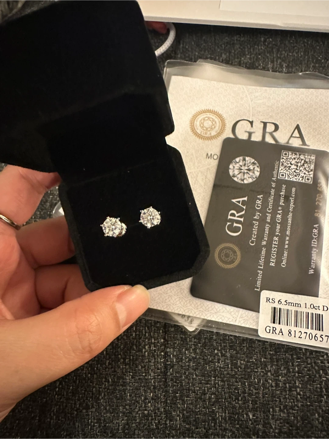 119Selling a pair of GRA moissanite diamond earrings. They are in excellent condition and come with the box. The earrings are RS 6.5mm 1.0ct.