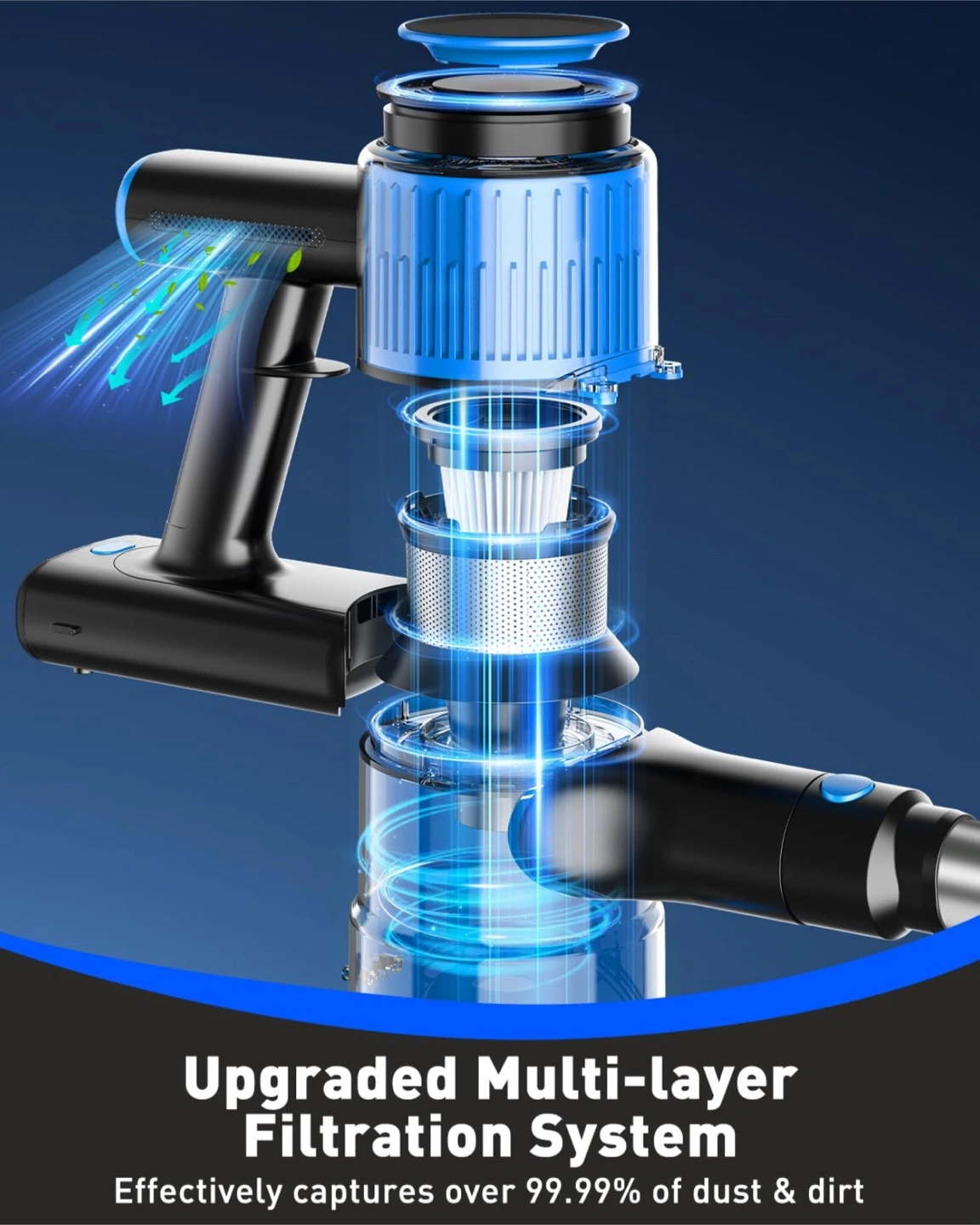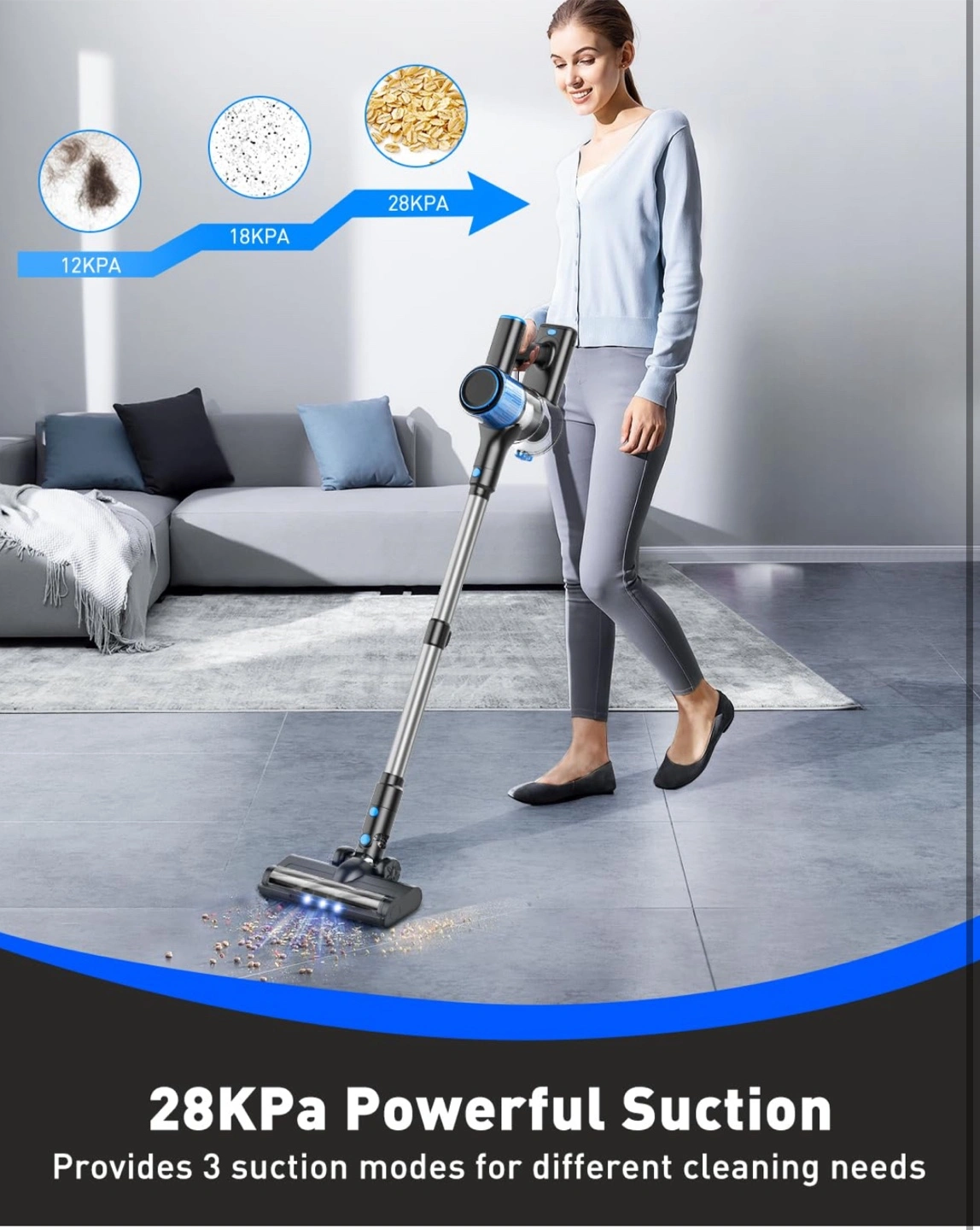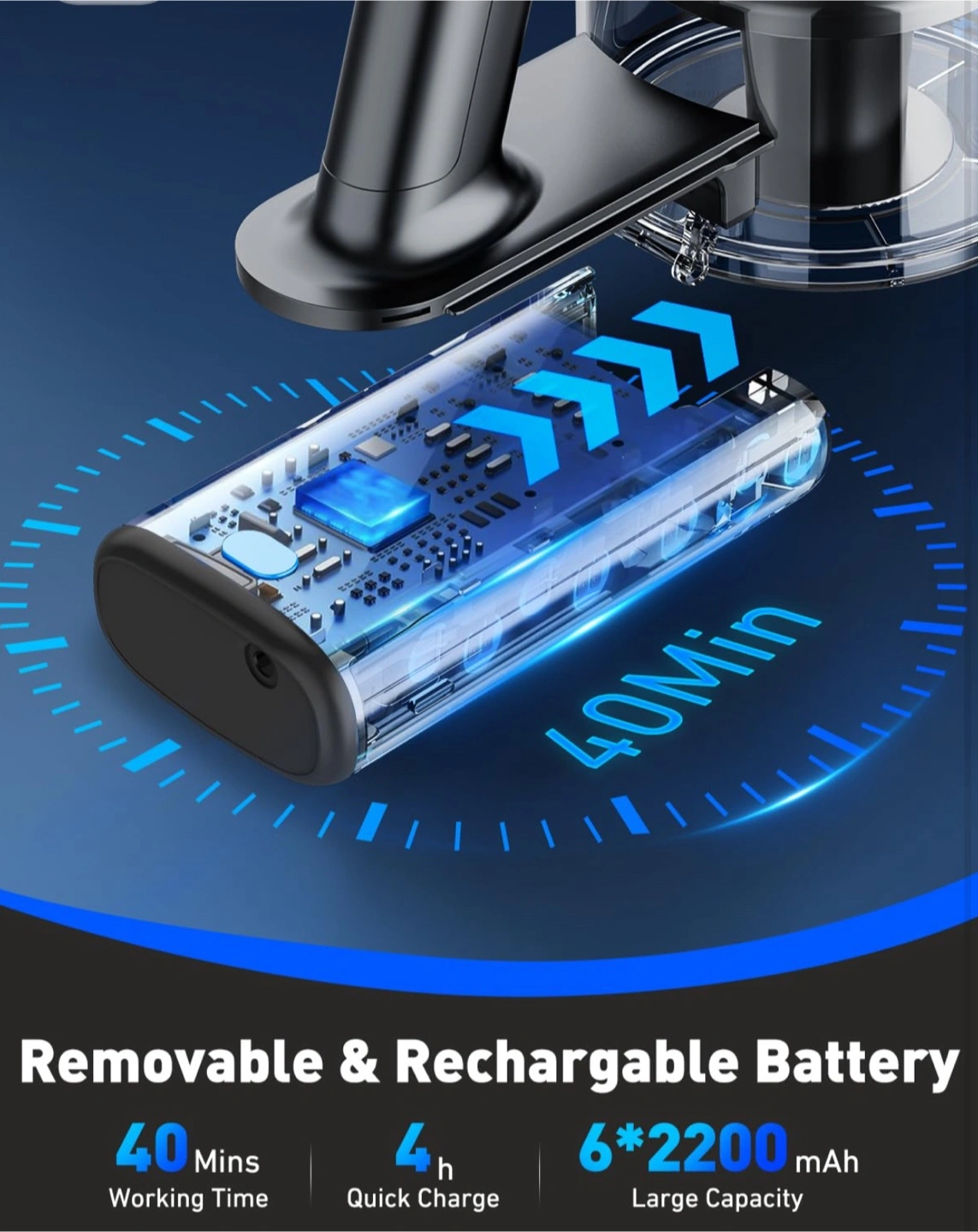 High-speed airflow with an upgraded 250W powerful motor, which is very energy-saving and efficient, generates less heat and makes less noise. 3 gears' suction adjustment and provides up to 25Kpa suction in maximum mode