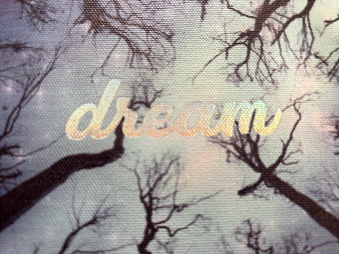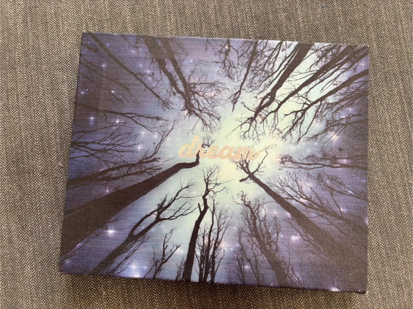 Canvas art with a dreamy design featuring trees and the word 'dream'. It's sized at 11" x 9" and is in great condition. Originally bought for $24.95