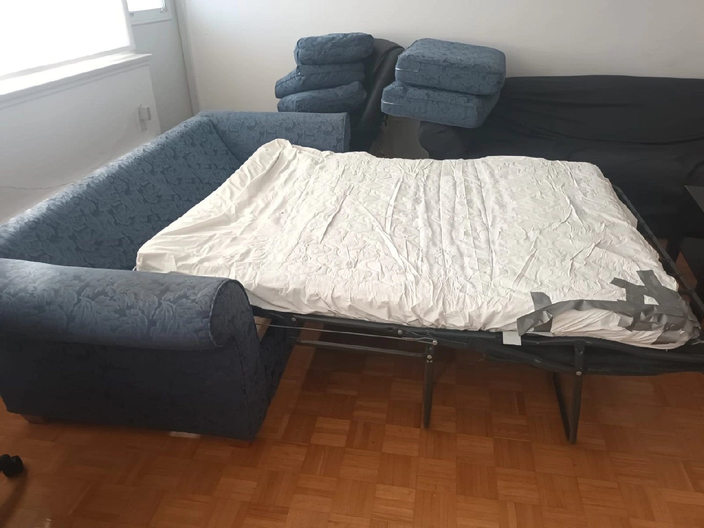 this sofa bed has been loved for a few years but still has a lot of life left in it.