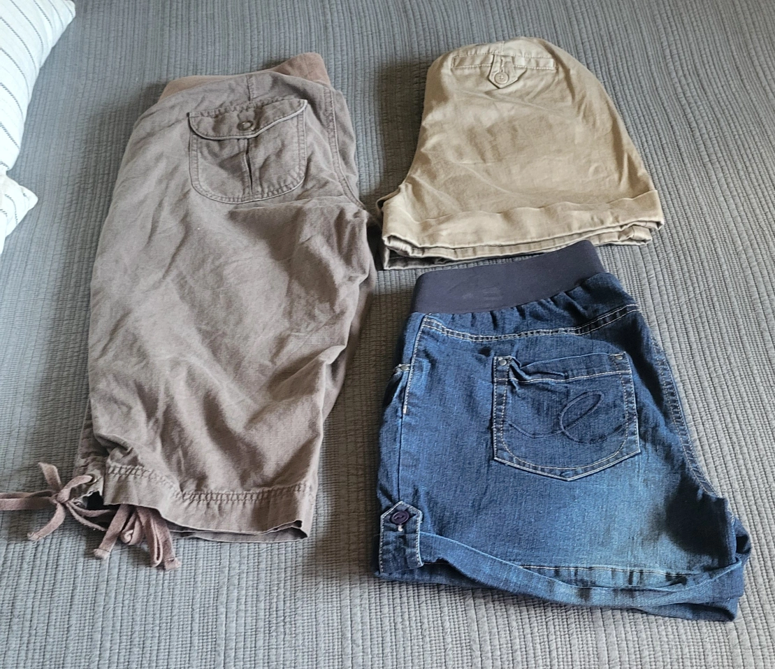 Save your money for the baby but be super stylish and comfy! Selling Maternity shorts (beige - size s, denim - size m) and capris (khaki - size s). $8.00 each or all for $20. Like new condution.