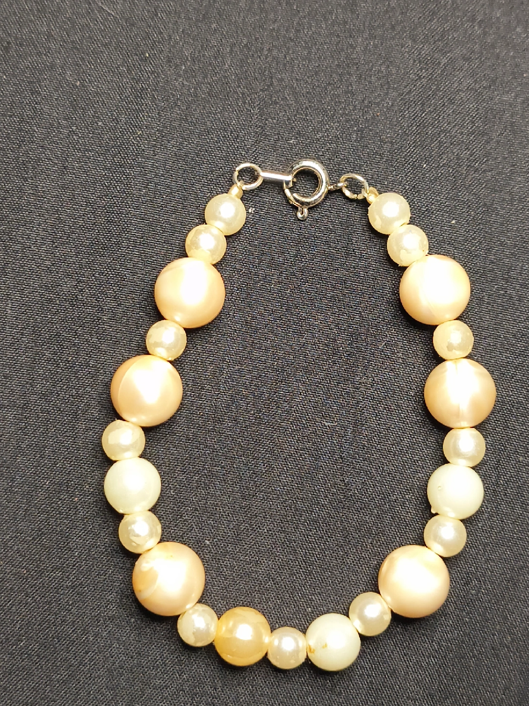 This is a beautiful pearl beaded bracelet. It features various sizes of pearl beads. The bracelet is in great condition and ready to wear