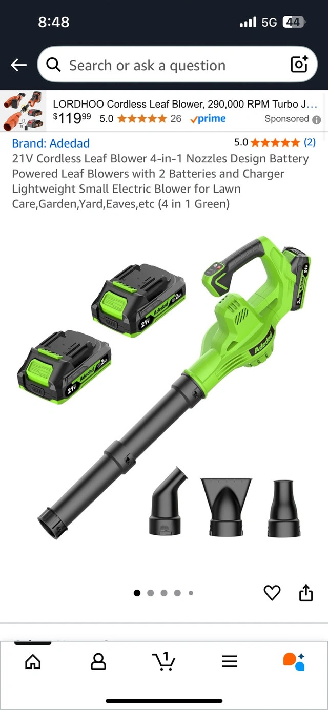 21V Cordless Leaf Blower 4-in-1 Nozzles Design Battery Powered Leaf Blowers with 2 Batteries and Charger Lightweight Small Electric Blower for Lawn Care, Garden, Yard, Eaves, etc (4 in 1 Green) Amazon price- $99.99 Brand new- unboxed.