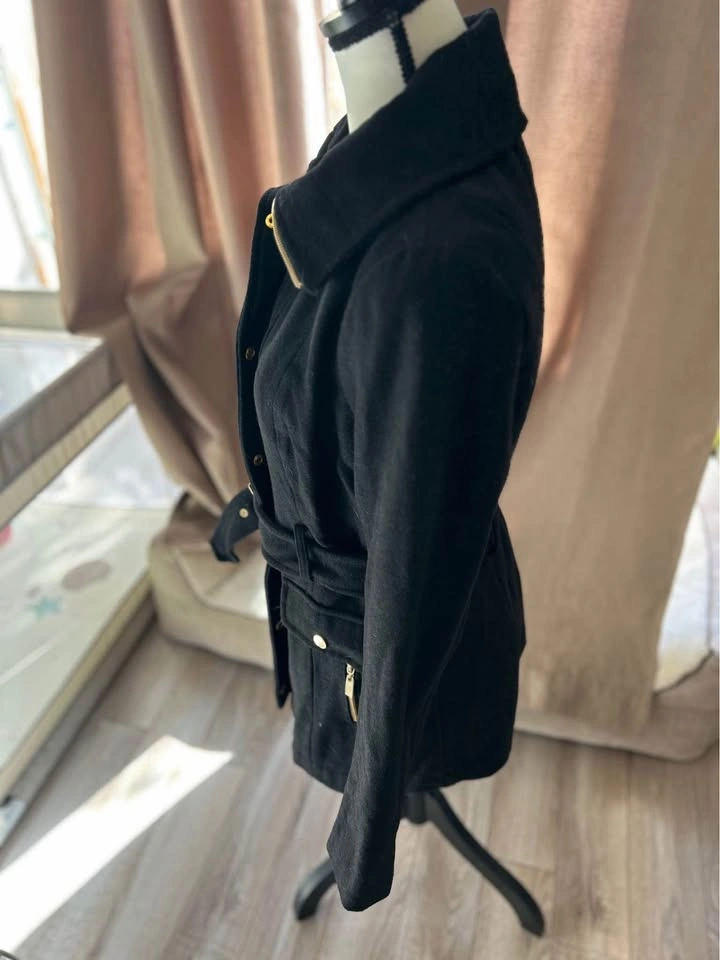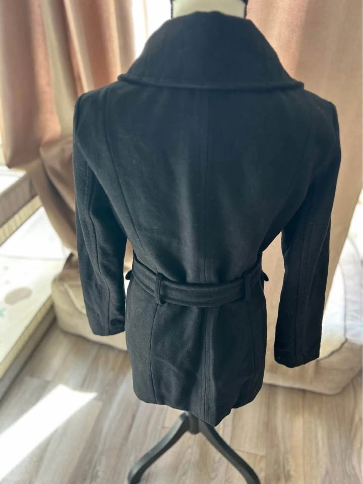 Barely worn, perfect condition, wool blend Guess Pea Coat in black, with gold hardware. Comes with removable belt. Size small. $40 or best offer. Pick up only in Abbeydale. Cash only please