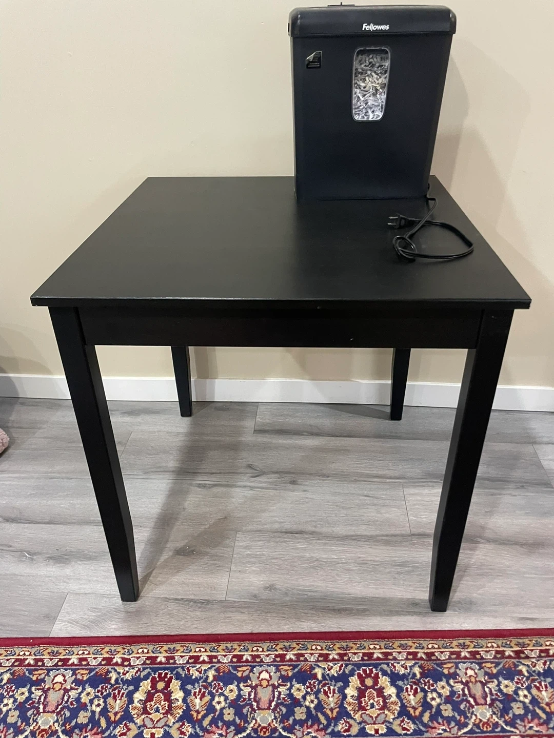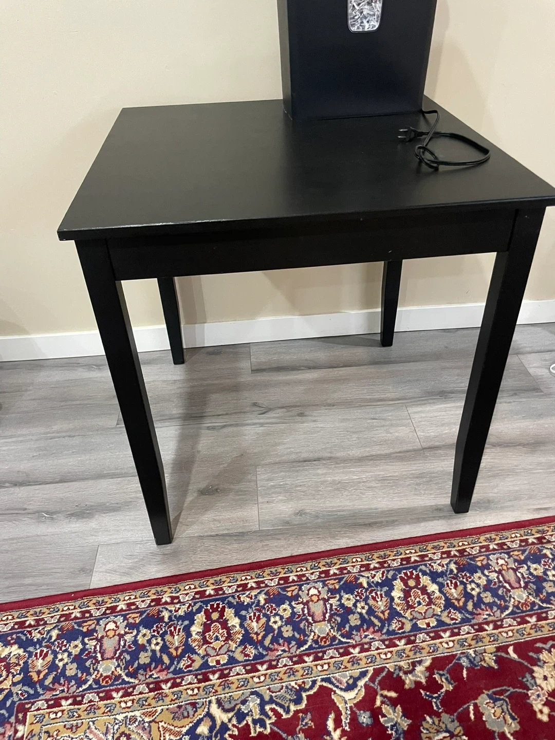 Selling a black dining table. It's a simple and sturdy table, perfect for small spaces or as an extra surface. The table is in good condition and ready for a new home
