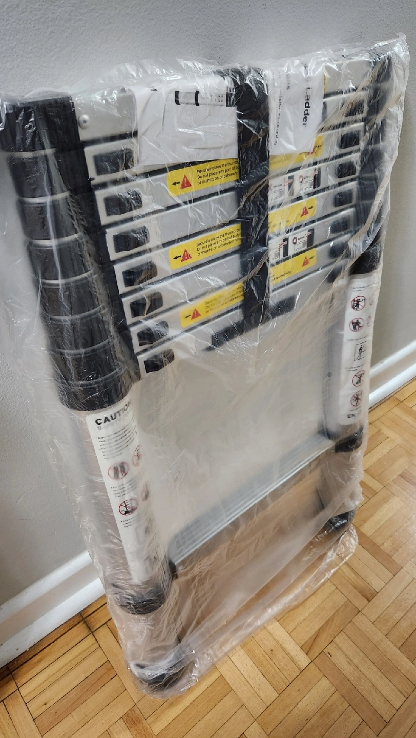 It's never been used and is still sealed. It is made of aluminum alloy, weighs 16.3 lbs and the load capacity is 330 lbs. Rungs are slip-resistant and have self-locking feature. Don't ask for a lower price please, original price is $210.
