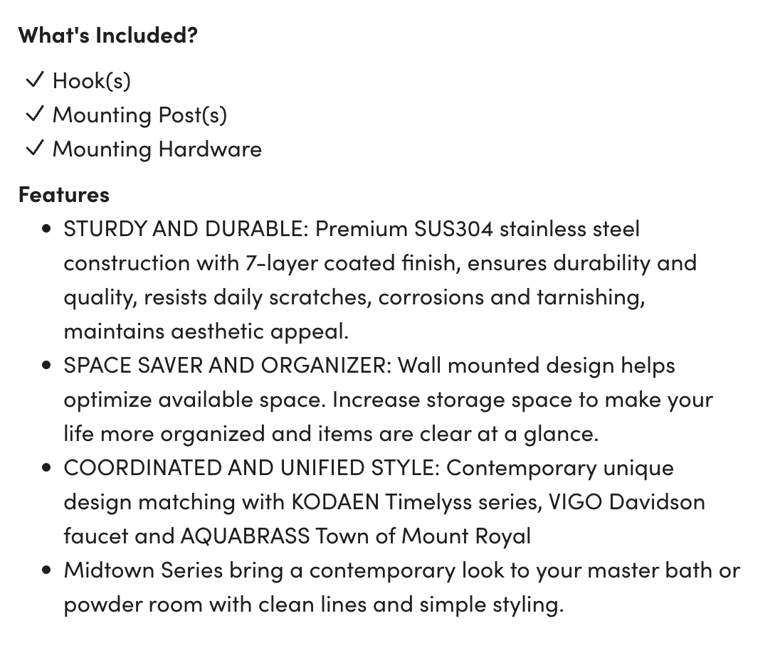 3 brand new bathroom hooks in chrome. Purchased for a bathroom renovation and never used them. Very solid feel.
