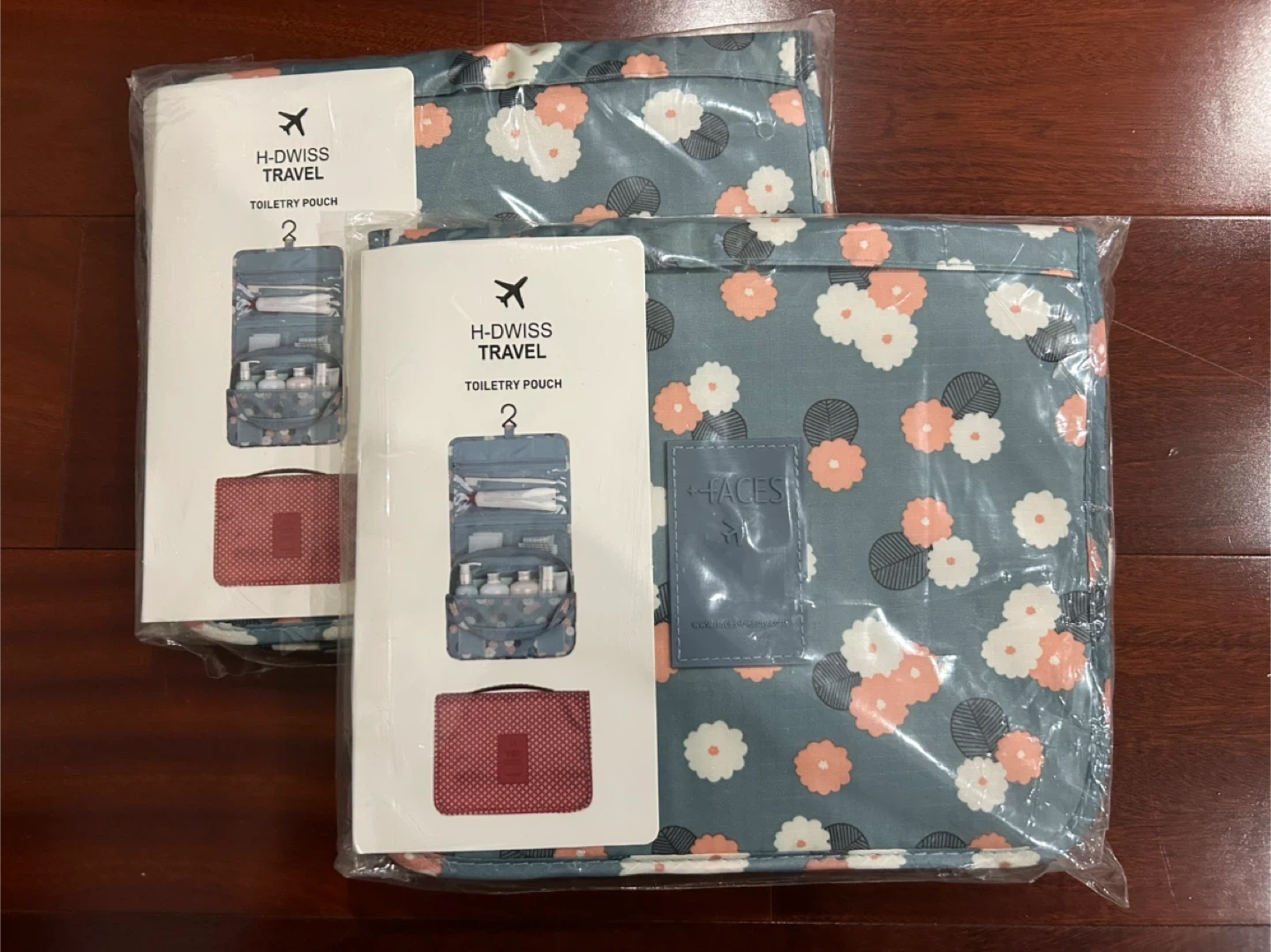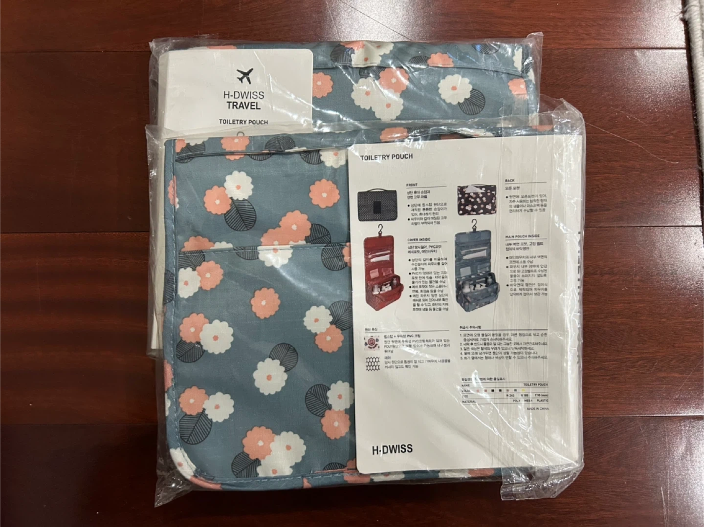 27Selling a brand new H-Dwiss Travel Toiletry Pouch! It's still in its original packaging. This pouch is perfect for keeping your toiletries organized while travelling. - Features a floral design - Made of polyester, mesh, and plastic - Dimensions: W 240 x H 185 x T 95 mm Cash only. Pickup available at Downtown area or PNE area. Thank you.