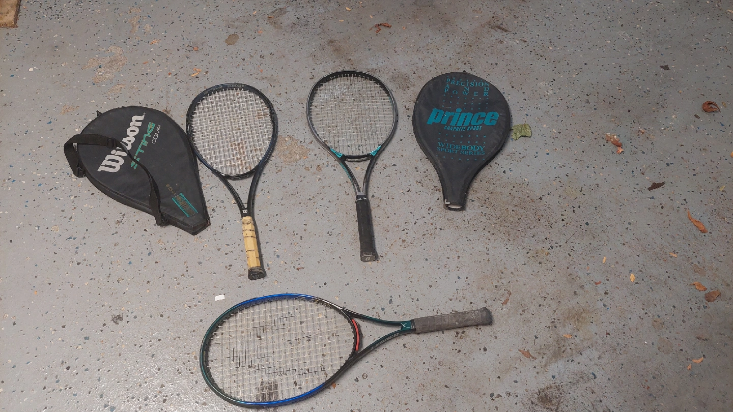 Selling a collection of used tennis racquets. Includes a Wilson Sting Comp racquet, Head(needs strings), and a Prince Widebody Sports Series racquet. Great for someone looking to get into tennis or needs some spares! $20 entire lot.