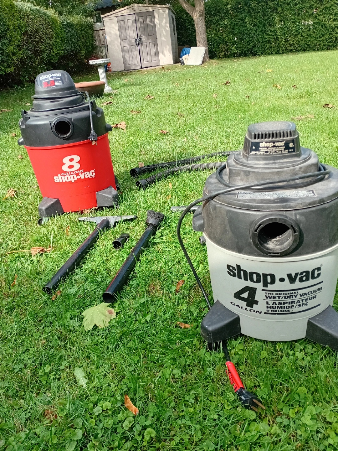Selling a Shop-Vac wet/dry vacuum combo. 8-gallon & 4 gallon model included with the attachments shown in the photos. Both used but in good shape. However the 4 gal has a broken lid latch that needs to be held by ziptie, other than that they both work great. Filters and bags not included