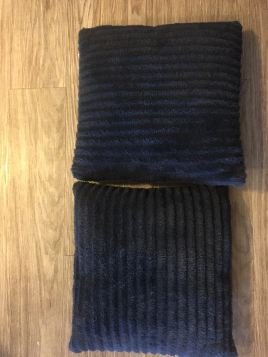 372Add a touch of cozy to your living space with these two navy blue plush cushions, each 18x18 inches. Been in storage in a no smoking, no pet home. * Colour: Navy Blue * Size: 18x18 inches * Material: Plush Based on similar listings on Kijiji, I'm pricing these cushions at $12, hoping to find a new home for them! If the ad is still up, then yes, these cushions are still available for purchase! It's like they're waiting for you to rescue them from cushion purgatory!
