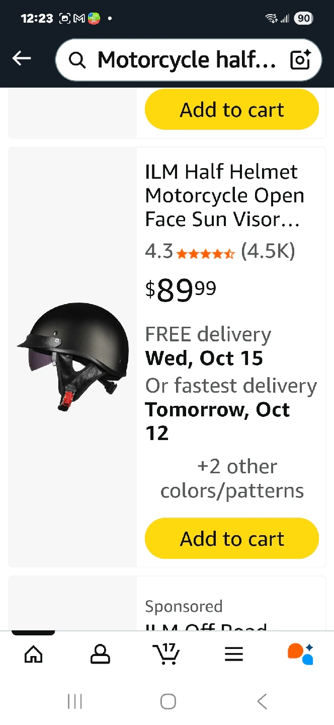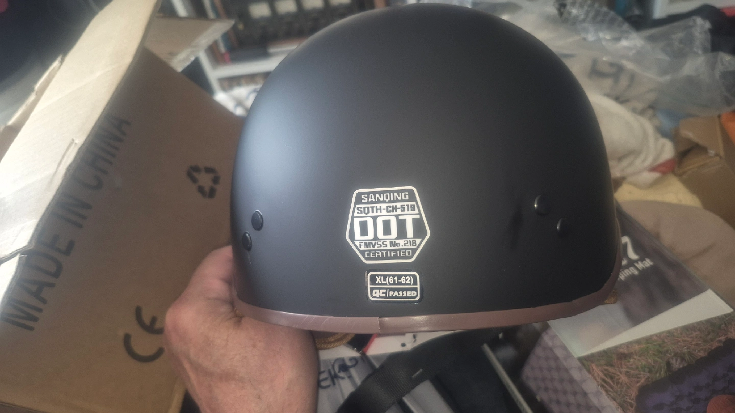 Selling an ILM half helmet, size XL (61-62 cm). It's a matte black motorcycle helmet with a sun visor and quick-release buckle. DOT certified for safety. one large and one small high gloss
