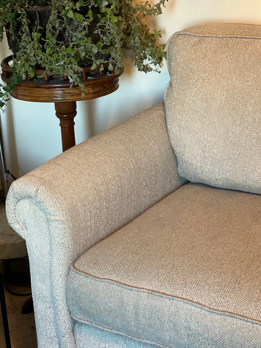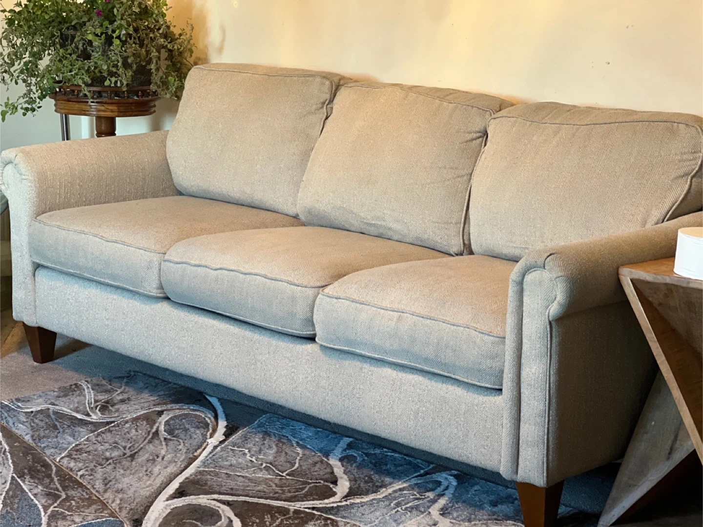 Selling a comfy three-seat sofa. And two seater sofa set. It has a neutral tone and classic design that would fit well in any living room. It's in great shape and ready for a new home!