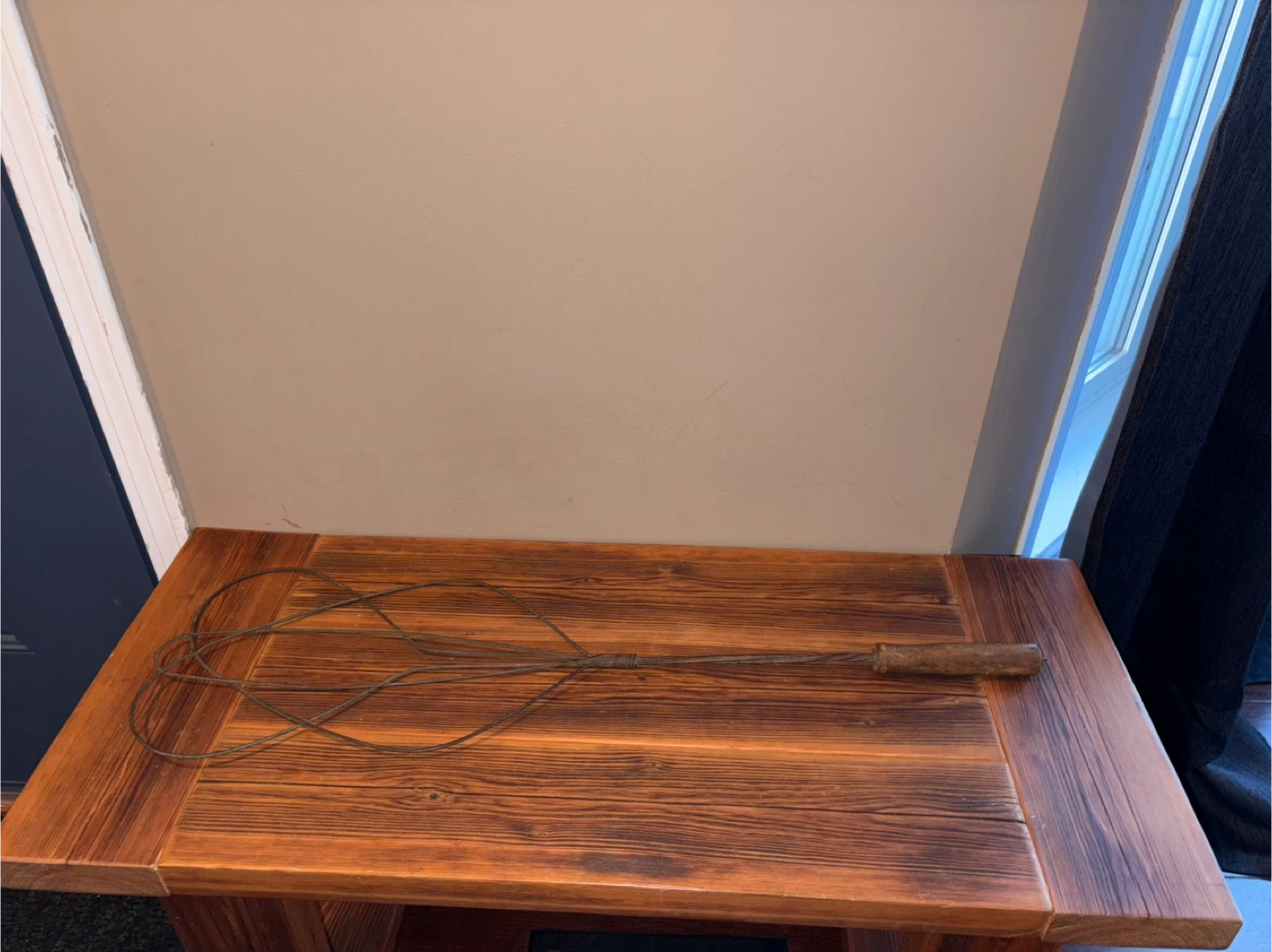 Selling a vintage metal rug beater. It's in good condition and ready to help you keep your rugs clean. Perfect for adding a touch of rustic charm to your cleaning routine