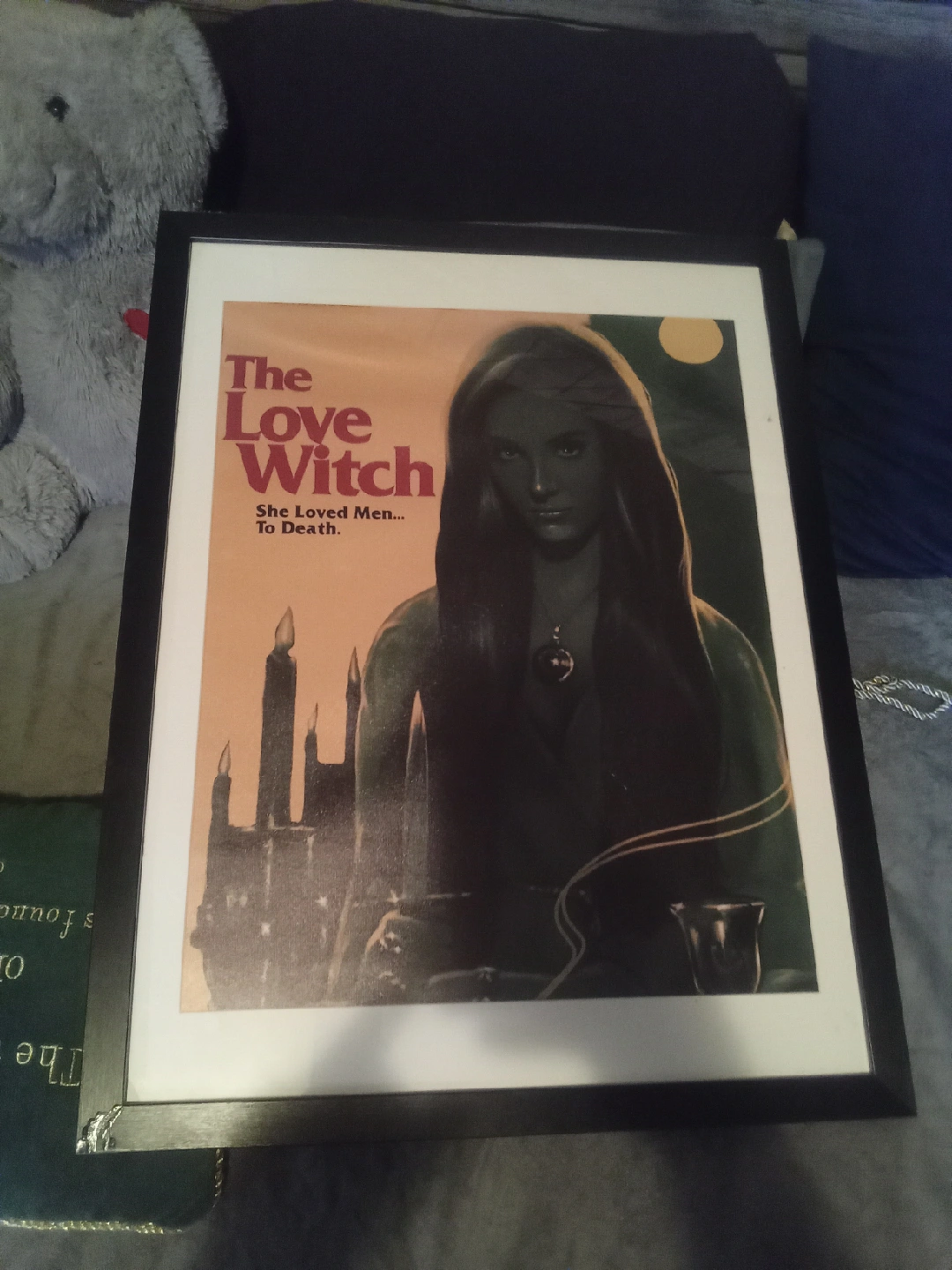 Selling a framed movie poster of "The Love Witch"! The canvas is new and ready to hang. The frame is black. Perfect for any movie buff or fan of the film! little chip on frame bottom corner