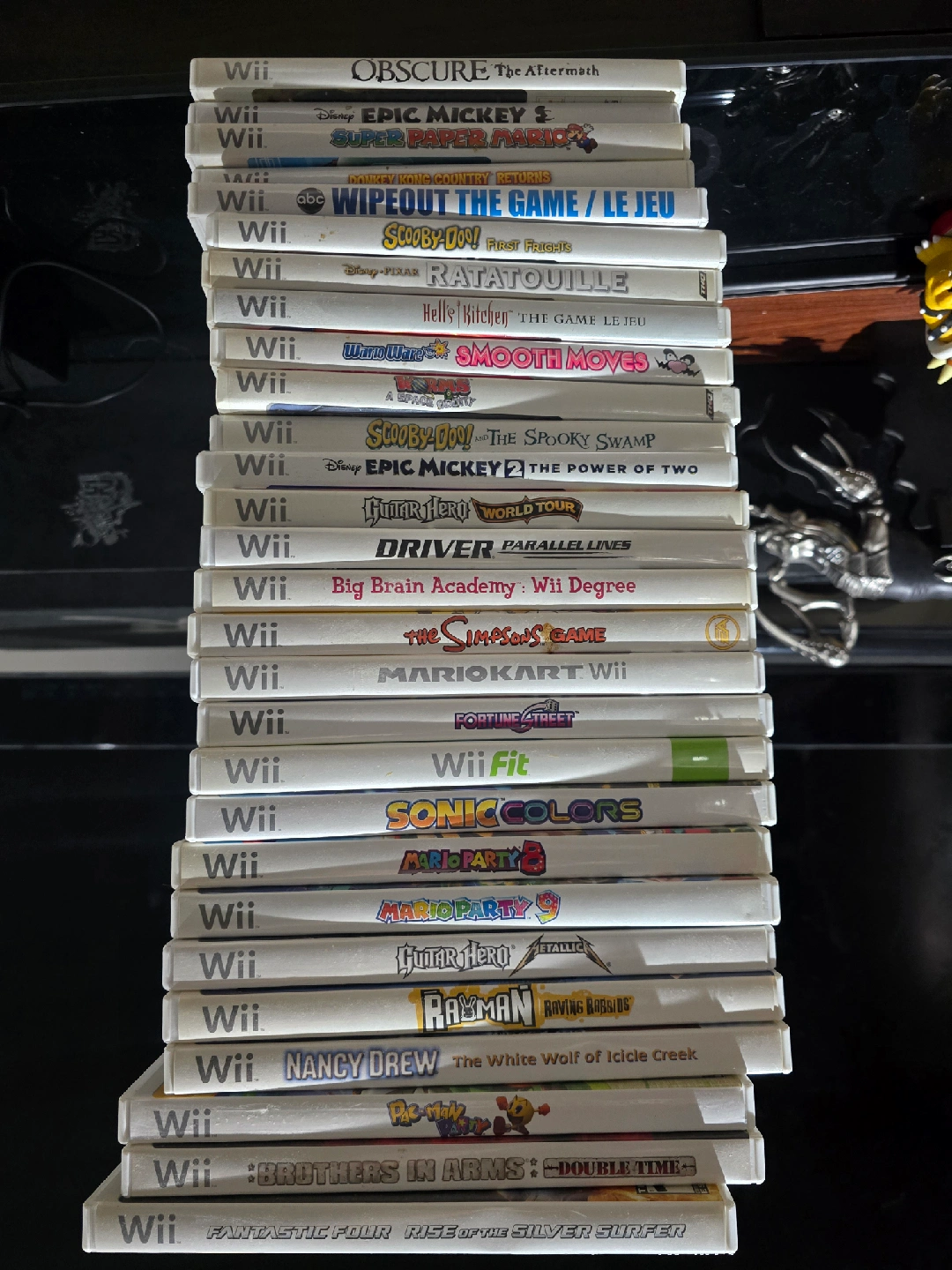 Selling a collection of Wii games! Titles include Guitar Hero Metallica, Mario Party 9, Fortune Street, and more. All games are in good condition and ready for a new home. Perfect for some nostalgic gaming fun!