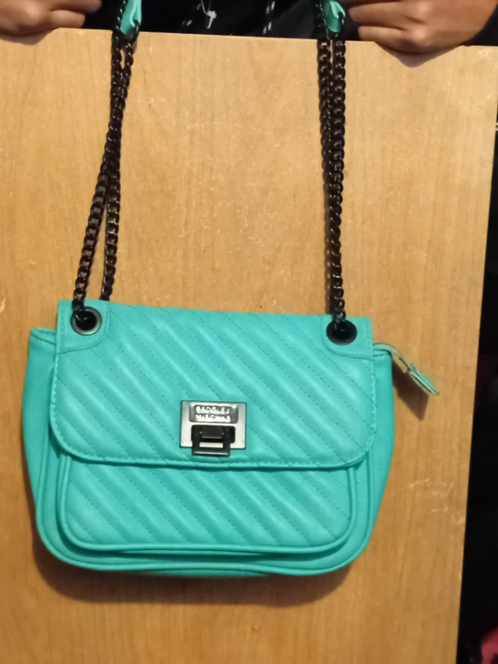 10Stylish Badgley Mischka crossbody bag in a lovely turquoise colour! Features a chain strap and a quilted design. It's in great condition and ready for a new home