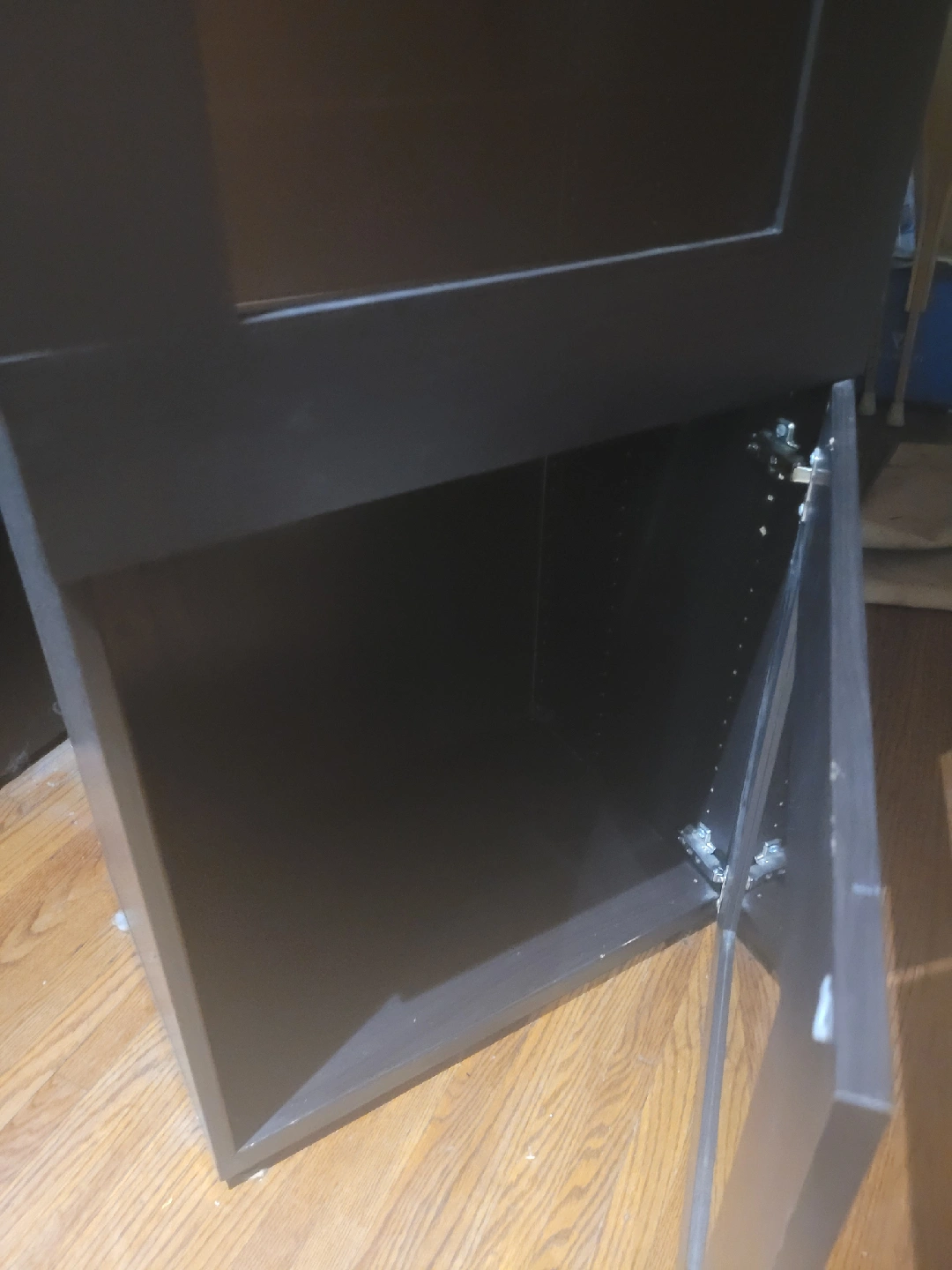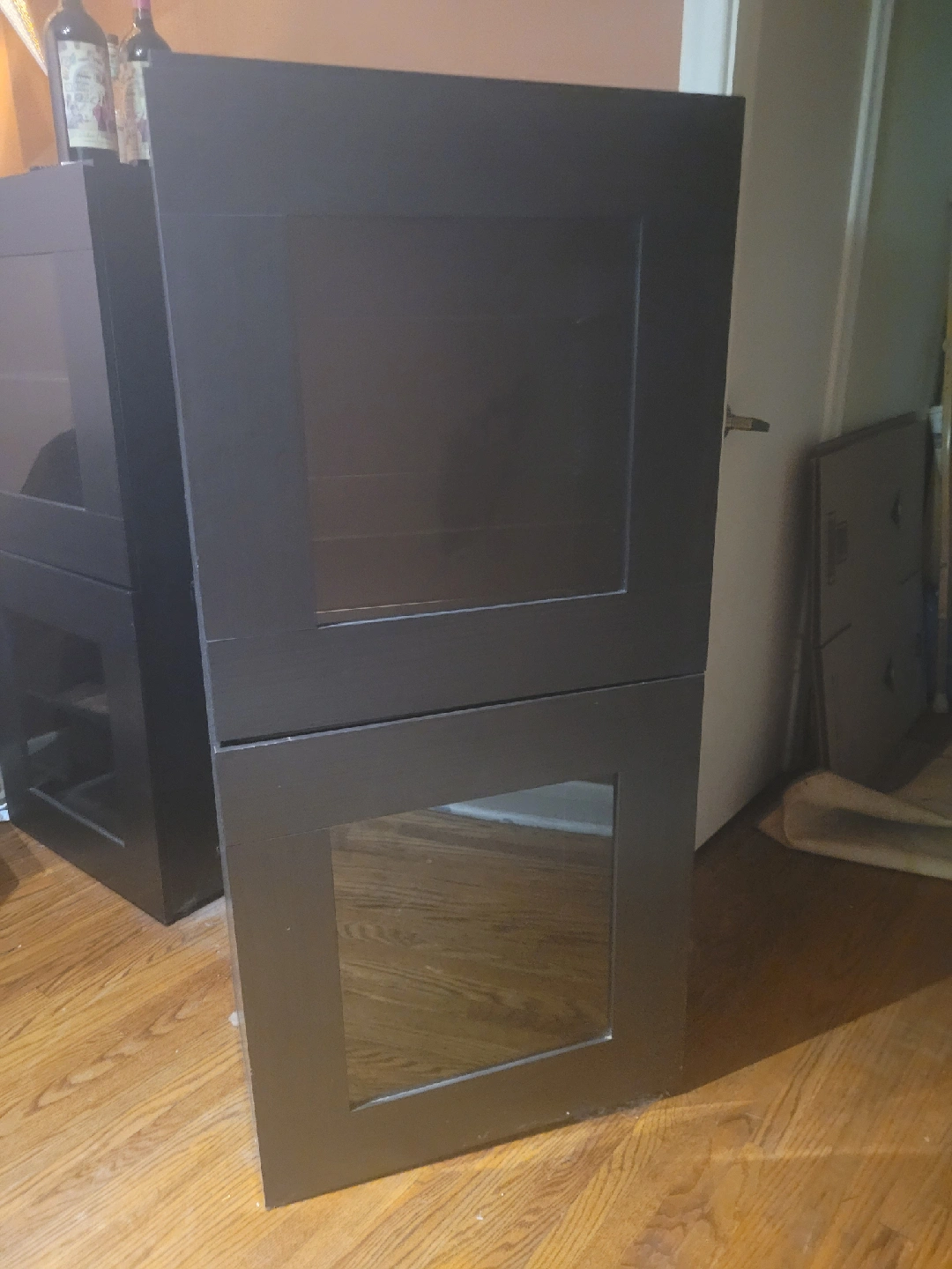 Selling a black display cabinet. It's in good shape, brackets for doors may need a little tightening.
