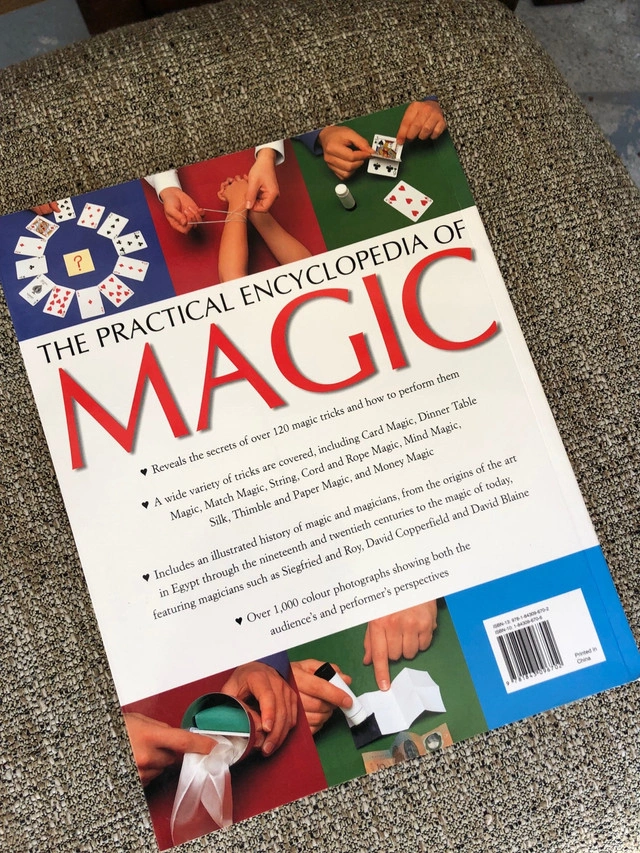 Dive into the enchanting world of illusions with "The Practical Encyclopedia of Magic" by Nicholas Einhorn! This comprehensive book is your guide to mastering over 120 magic tricks, complete with baffling optical illusions and incredible mental magic. It reveals the secrets of card, rope, silk, thimble, and money magic, all illustrated with over 1,000 colour photographs. This book is in good condition. Additional features include: * Step-by-step instructions for close-up magic * Explanations of card magic, dinner table magic, and more * Historical insights into the art of magic from ancient Egypt to modern masters like Siegfried and Roy Unlock the secrets of the ages and amaze your friends with this treasure trove of magical knowledge! I am pricing it at $15 CAD.