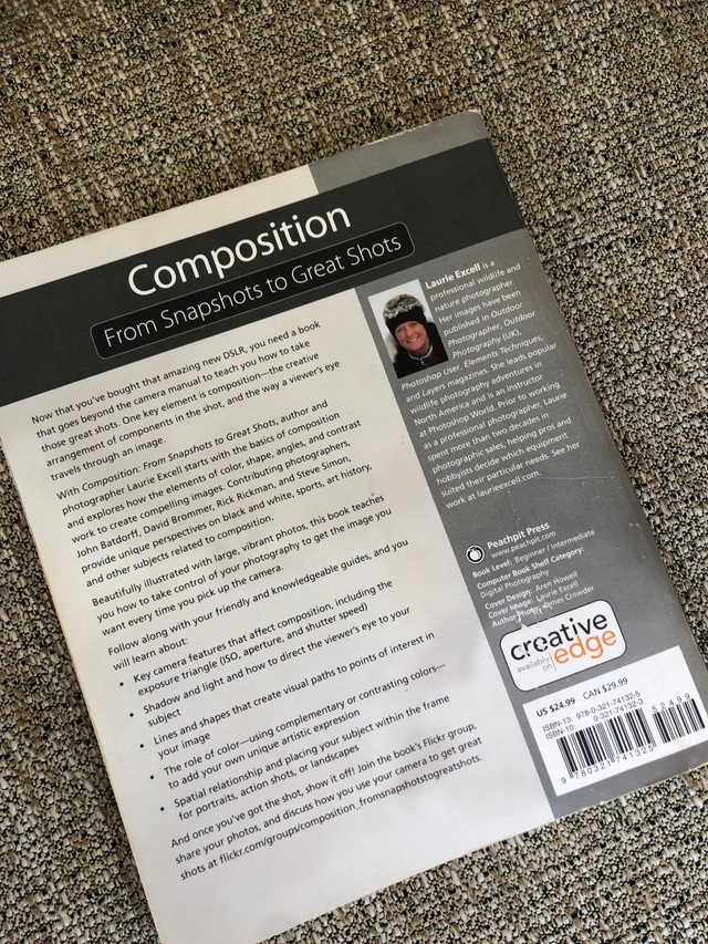 33Enhance your photography skills with this used copy of 'Composition From Snapshots to Great Shots'. This book is filled with insights to elevate your photography game. It delves into the key elements of composition, illustrating how to creatively use lines, shapes, and contrast to make compelling images. Perfect for photographers looking to refine their artistic vision. Specifications: * Title: Composition From Snapshots to Great Shots * Authors: Laurie Excell, John Batdorff, David Brommer, Rick Rickman, Steve Simon * Subject: Photography Composition I have really enjoyed it, but I'm moving to a minimalist lifestyle. If the ad is up, it's available!