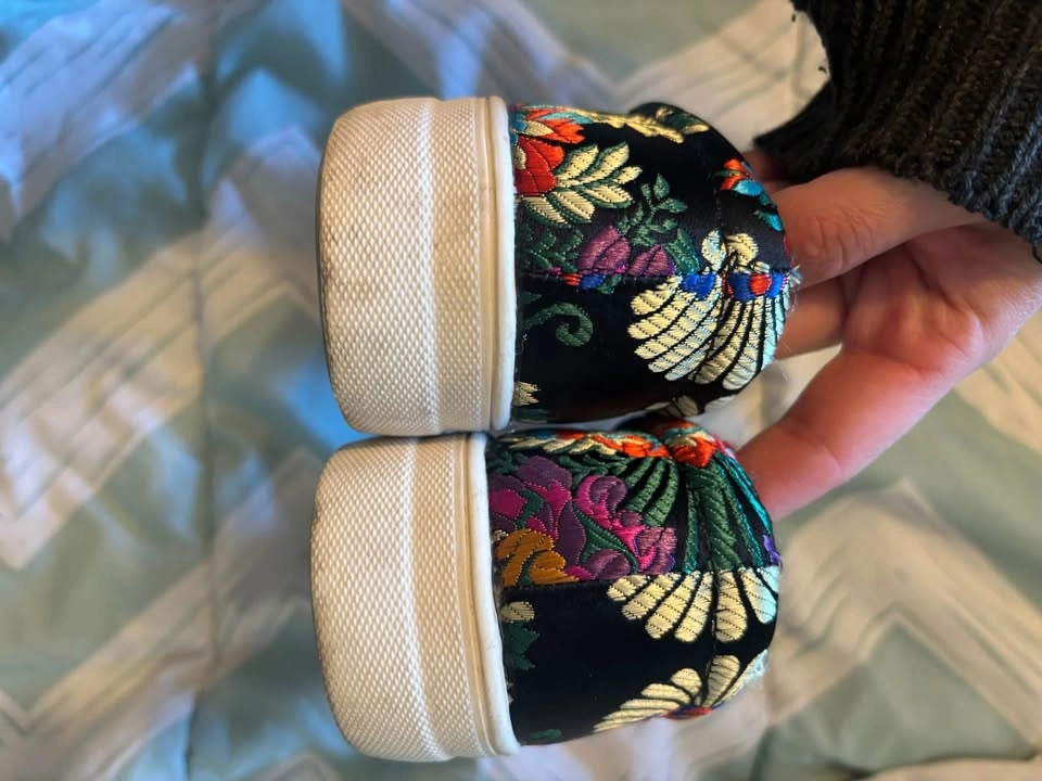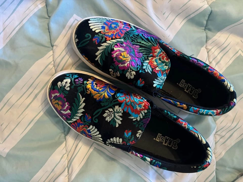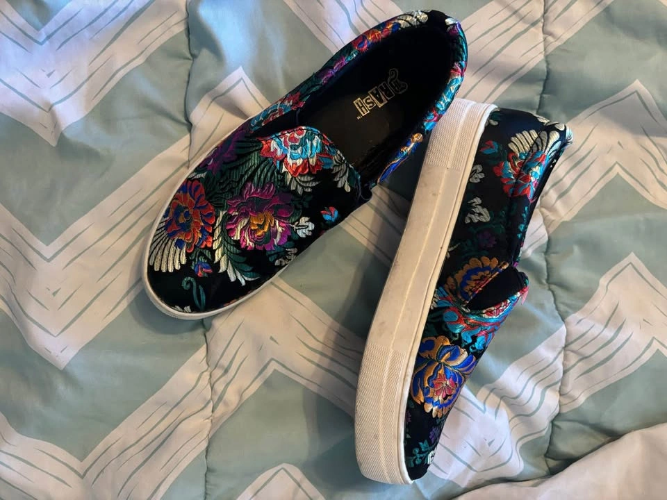 15Very colourful embroidered slip on sneakers. Size 7.5 They are in great condition just need a bit of a clean on the soles. Pickup in Dover. Cash only please.