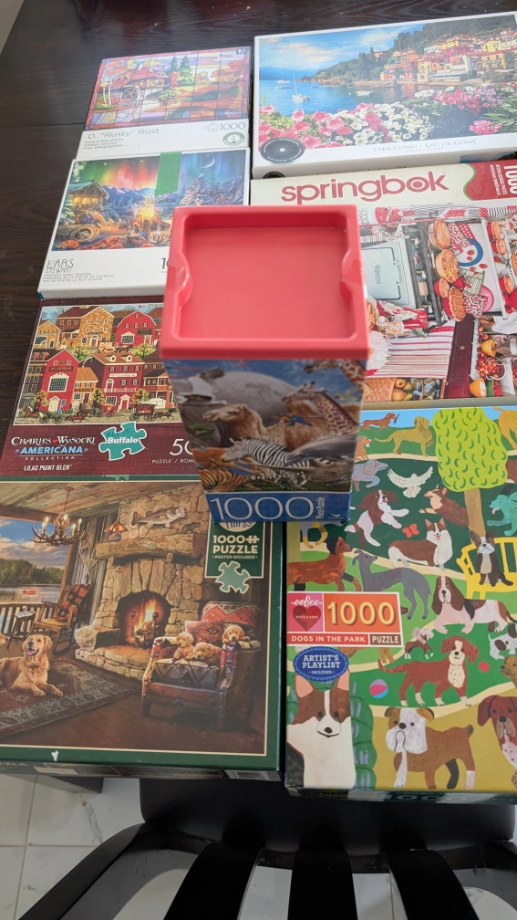 Selling a collection of 1000 piece puzzles! There's a variety of themes, including landscapes, animals, and Americana. Brands include Buffalo and Springbok. Perfect for puzzle enthusiasts! 3 dollar each