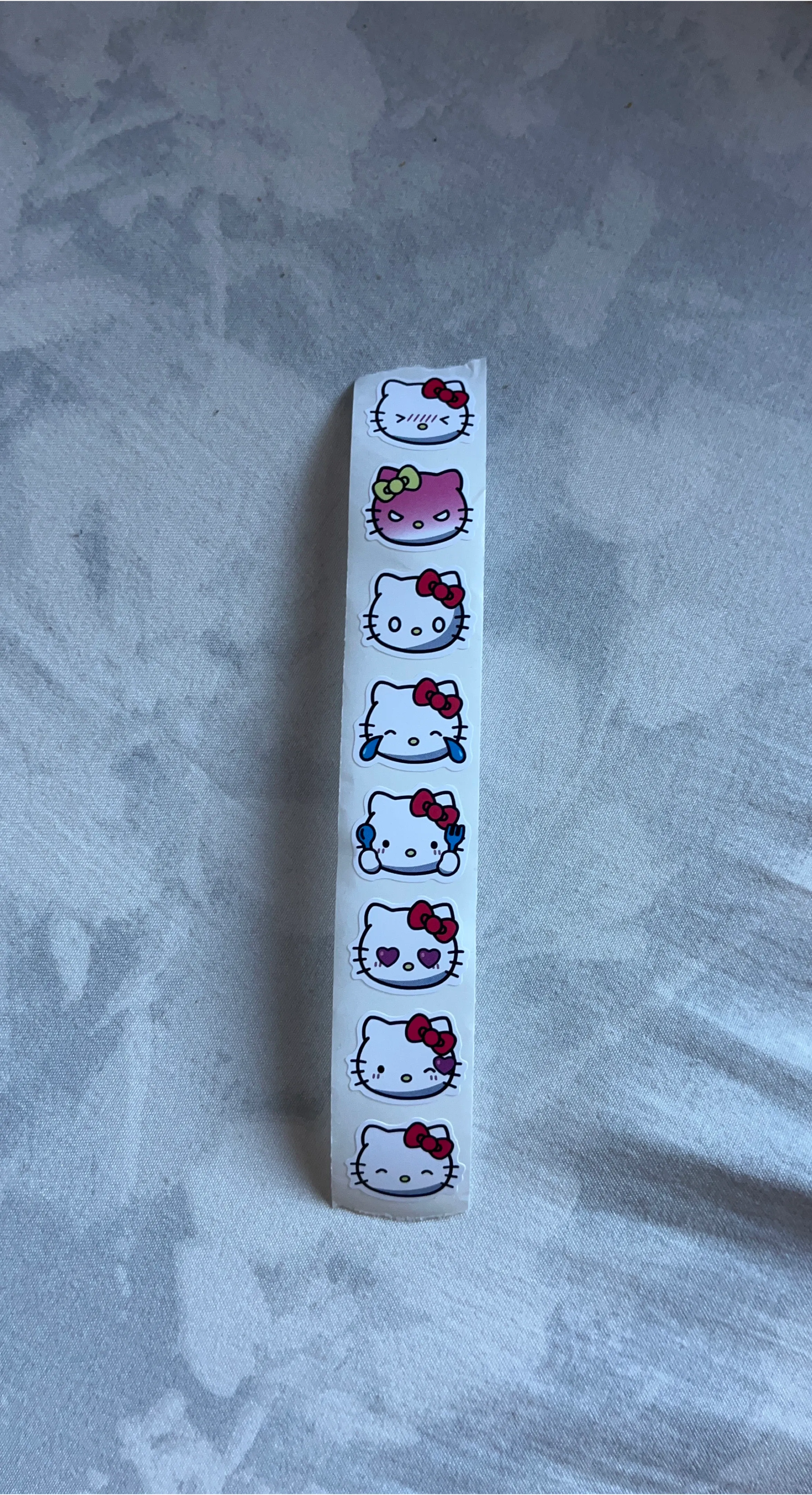 A roll of Hello Kitty stickers with various expressions. Perfect for decorating your notebooks, laptop, or anything you want to add a touch of cuteness to