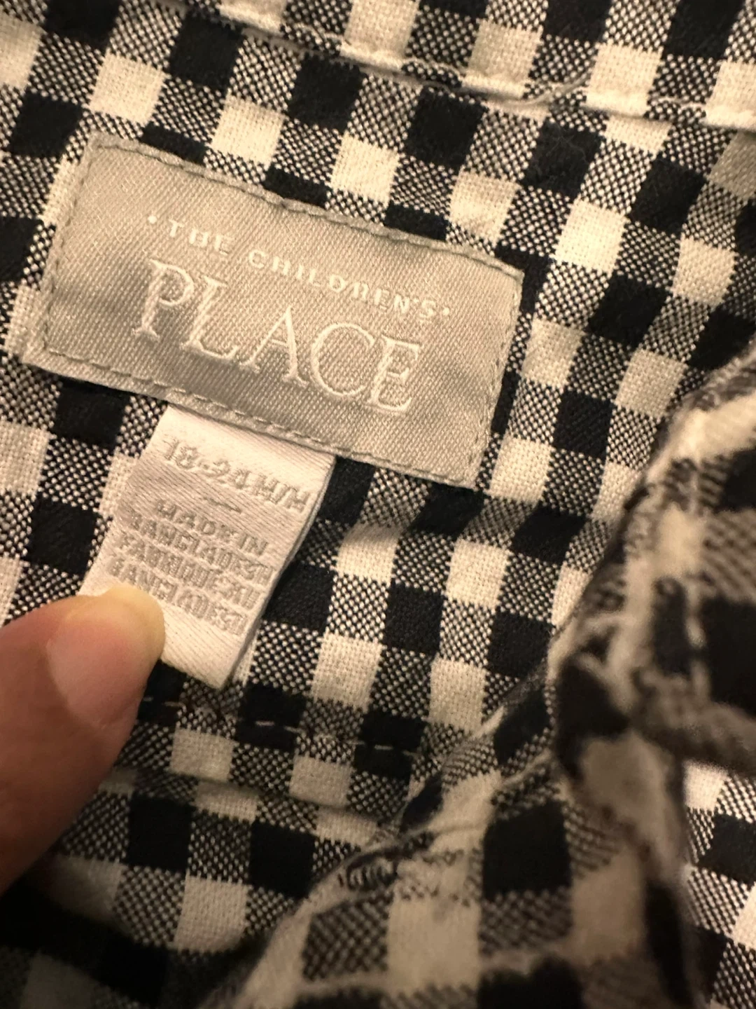 A cute dress shirt from The Children's Place! It's sized for 18-24 month olds and is in great condition, worn for only a few mins.