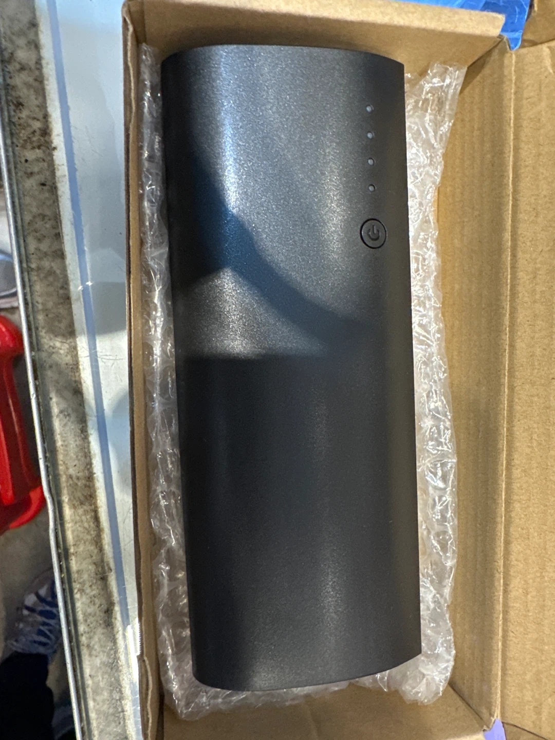 I'm selling a portable power bank in black. It comes with its original box. It's lightweight and portable, perfect for travel or everyday use