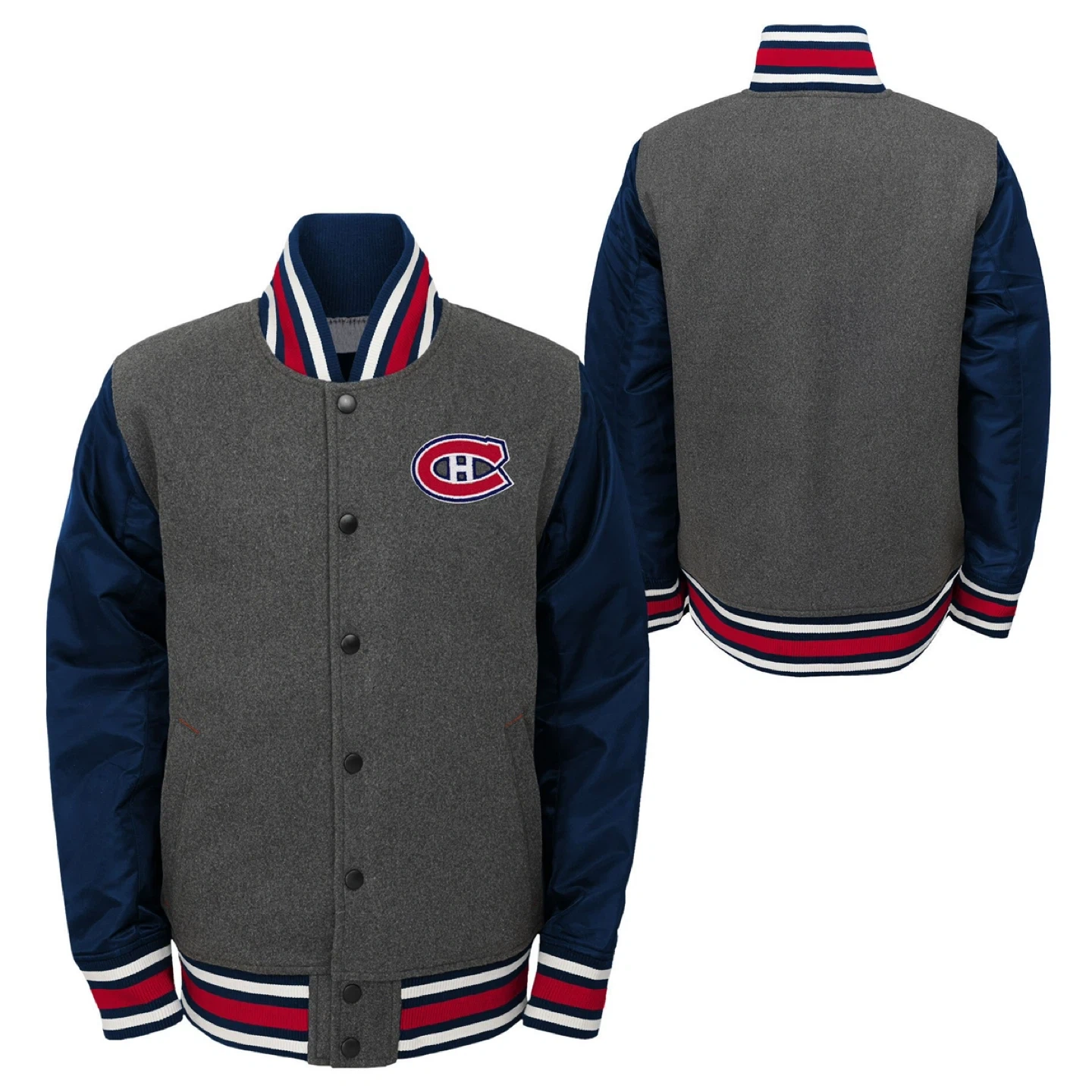 442Selling a Montreal Canadiens varsity jacket! It's grey with blue sleeves and the classic Canadiens logo. Perfect for showing your team spirit on those cooler days! Ptp 19” Length 23”