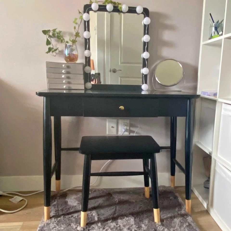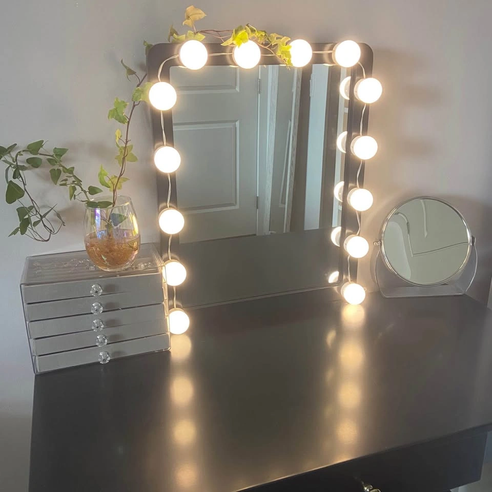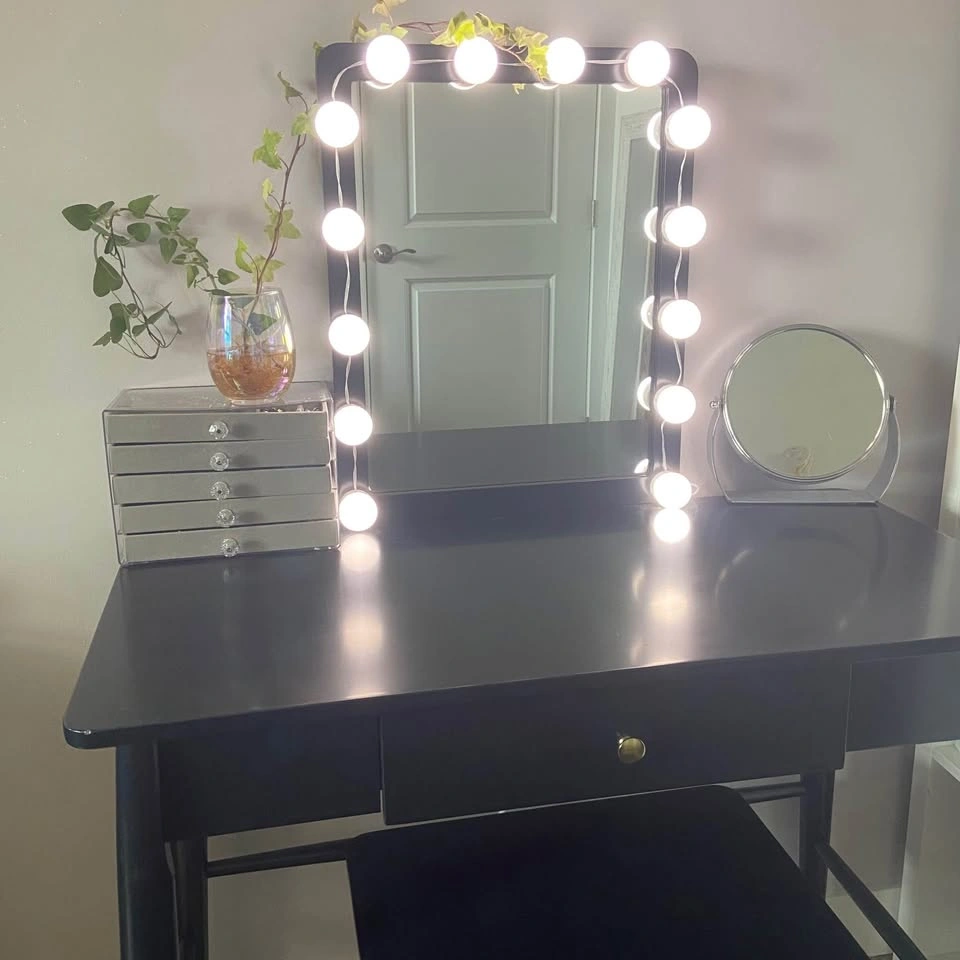 Paid 280 used for less than a year was only used a handful of times (I normally just get ready in the bathroom so I don’t wake my husband) and going with a different color scheme. The lights were also added after and could be taken off if desired there are different settings can go dim to bright and has warm, natural, and cool settings too.