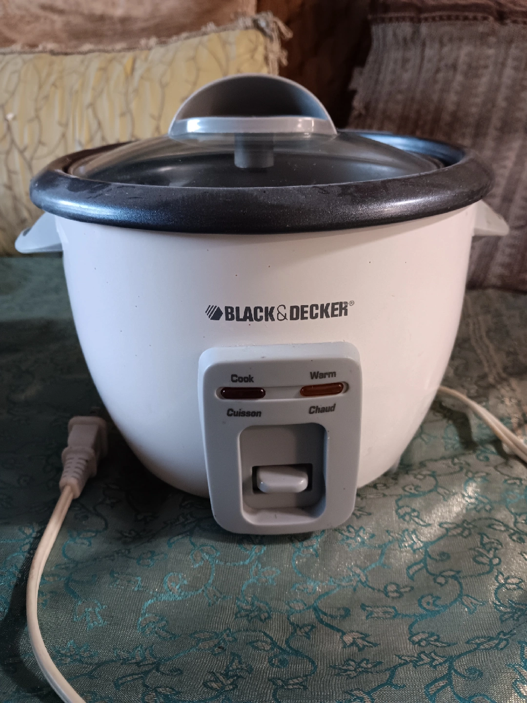 390Black & Decker rice cooker in good condition! It has a cook and warm setting. Perfect for making rice for one or two people (3 cups).