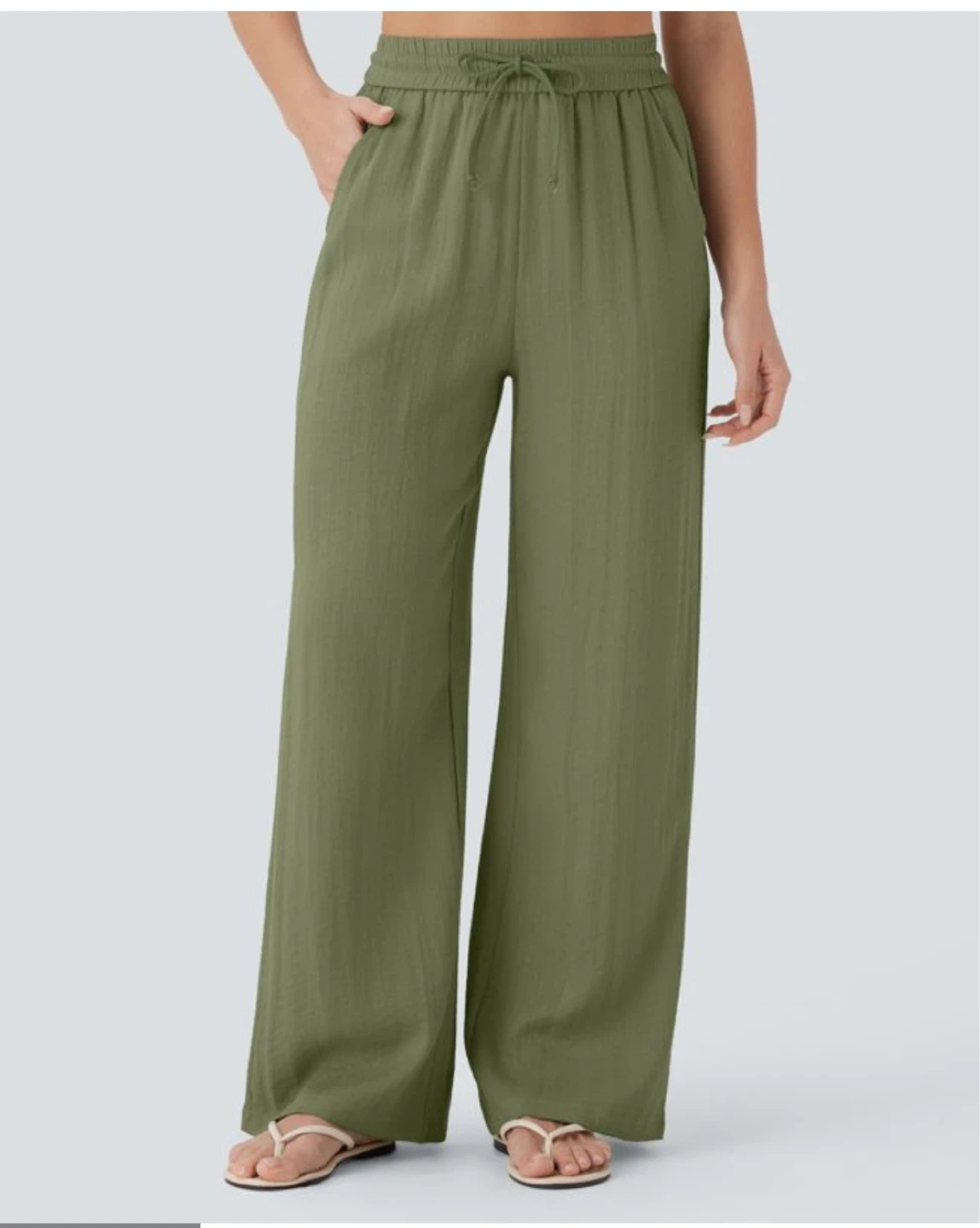 570Brand New - Halara- High Waisted Drawstring Pocket Wide Leg Casual Linen-Feel Pants These wide leg palazzo pants are perfect for lounging around the house or dressing up for a night out! They feature a comfortable elastic waistband with a drawstring. Available in a two colours, as shown in picture. Bought it for 45$ + tax, selling it for 20 each OUTSEAM LENGTH: 42 IN WAIST: 31-33.5 IN HIP: 40.5-43 IN