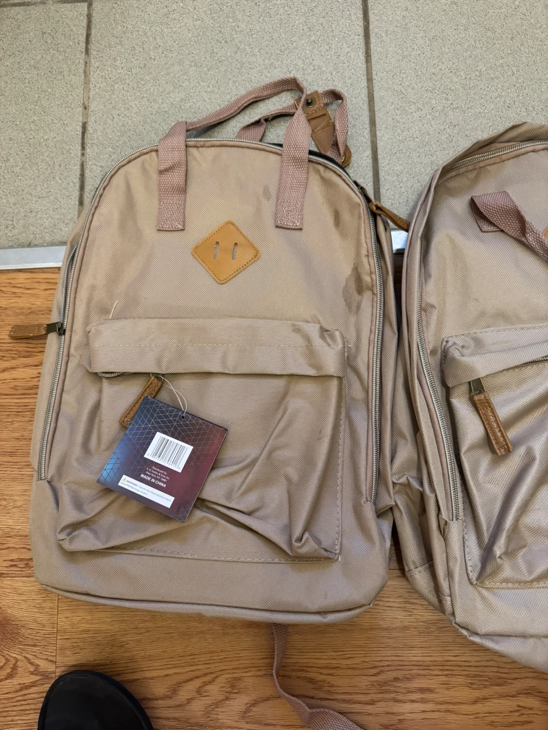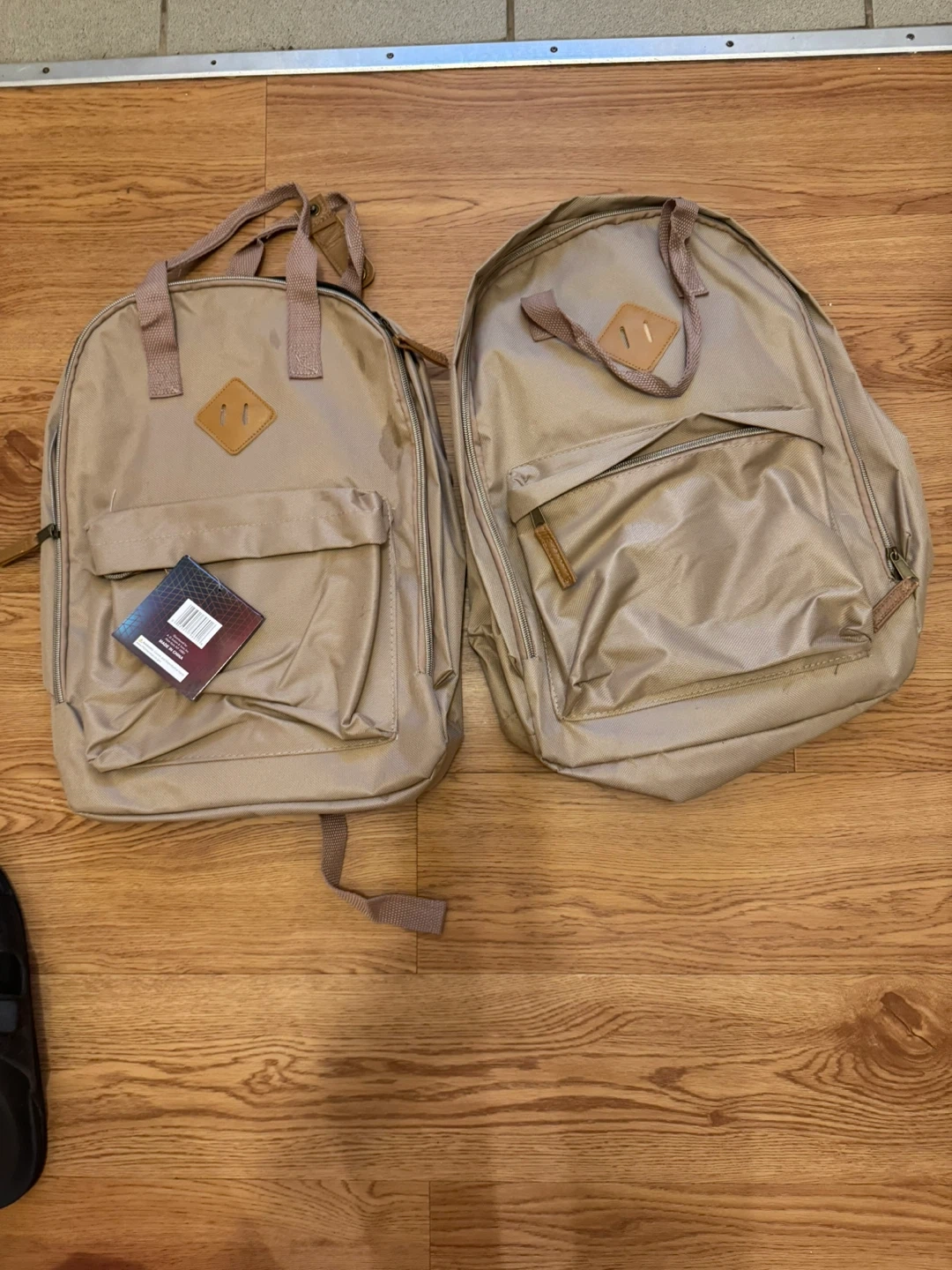 Selling a set of two beige backpacks. They're in good condition and ready for a new home. Perfect for school, work, or travel!
