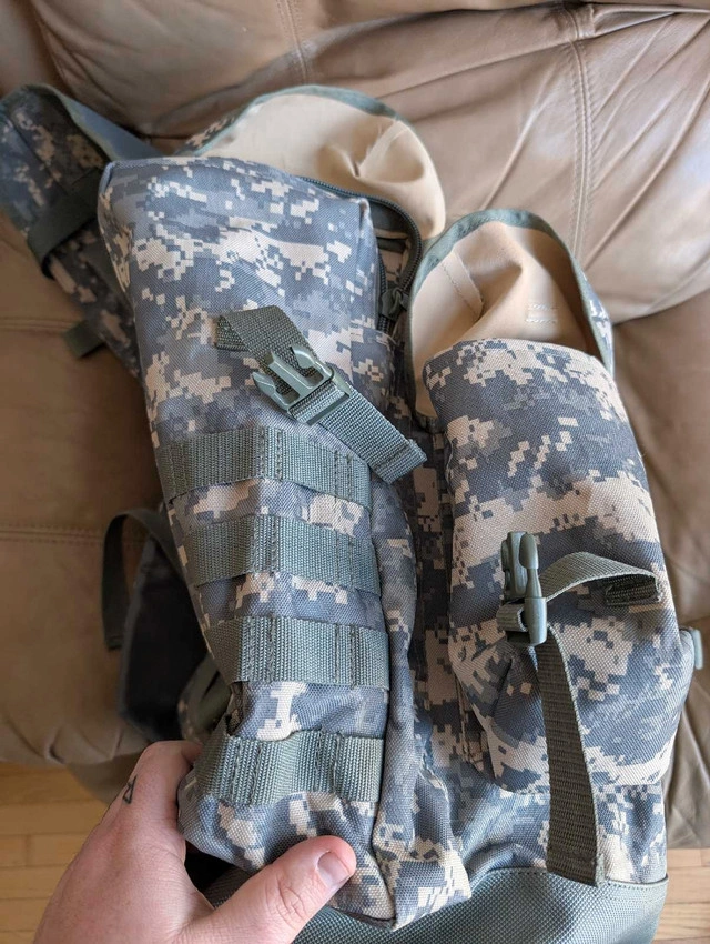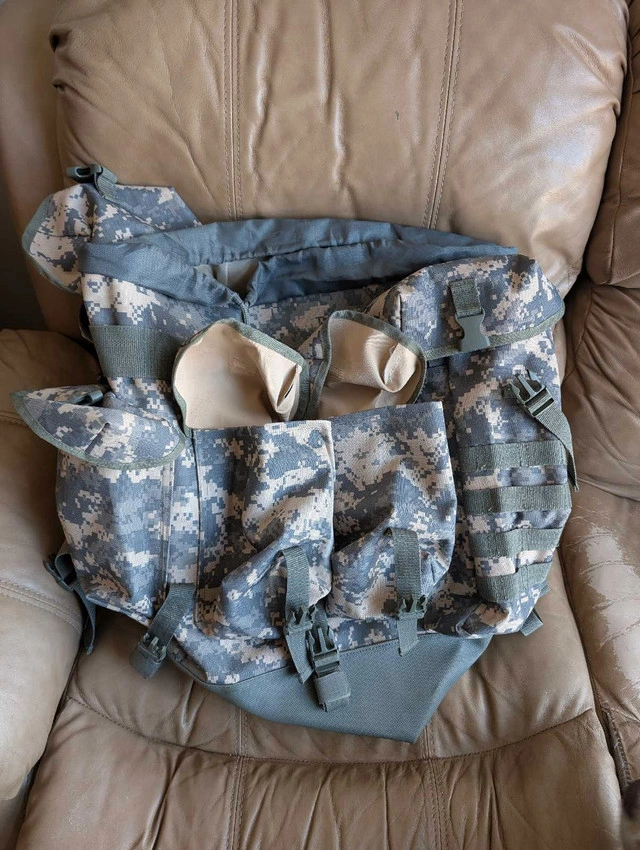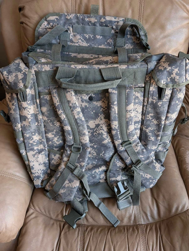 I'm selling a used tactical backpack in digital camouflage. It's in good condition and ready for your next adventure. It features multiple compartments and durable construction, perfect for outdoor activities or tactical use. This is an oversized backpack as can be seen in the photo, it's pretty big. Pick up in Coventry Hills. If the ad is up, it's still available!