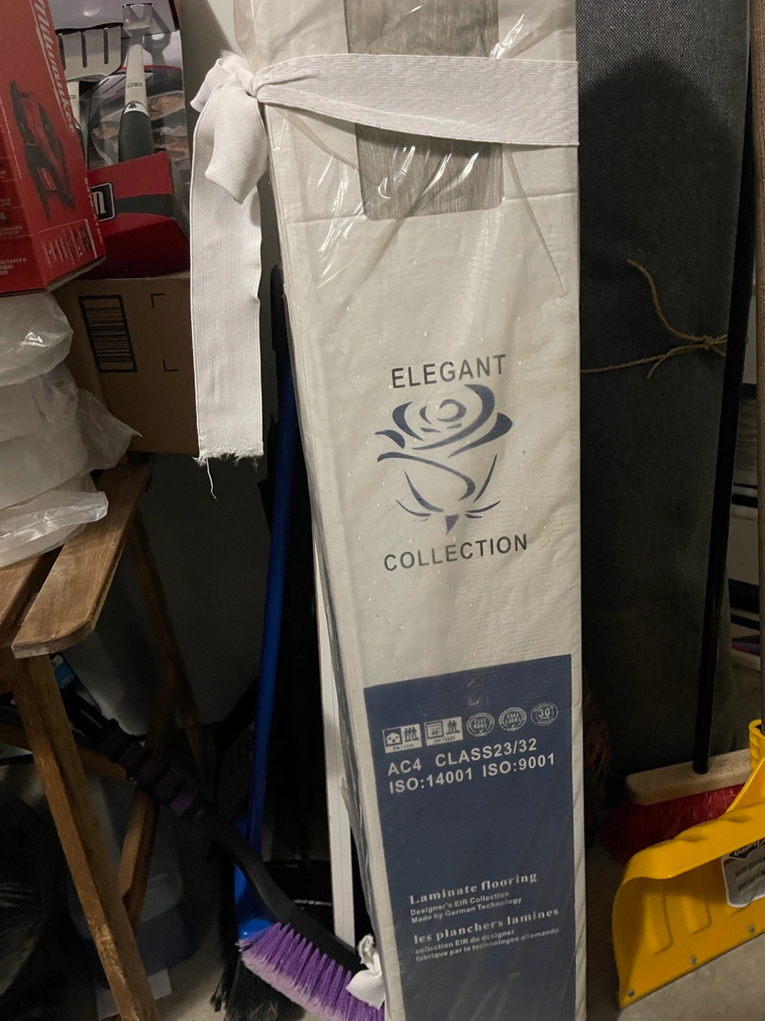86Selling one box of Elegant Collection laminate flooring. It's brand new and still in the packaging. Great for a home renovation project! Grey color with insulation roll