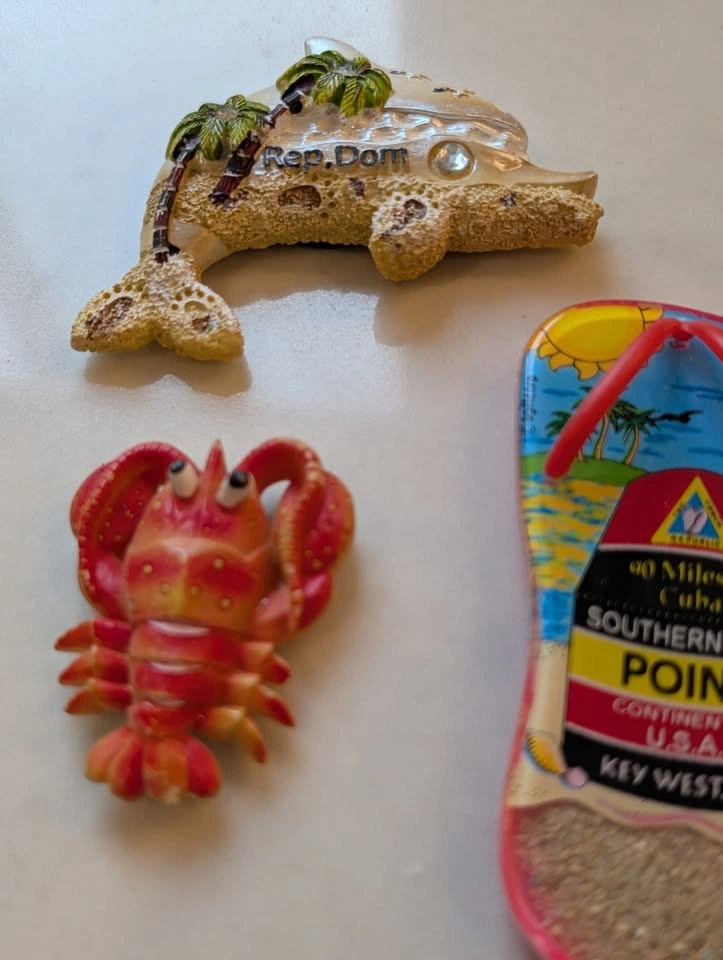 This lot of magnets includes magnets from: Canada Dominican Republic Key West, Florida Please note: there is some wear to these magnets and the dolphin has a chip