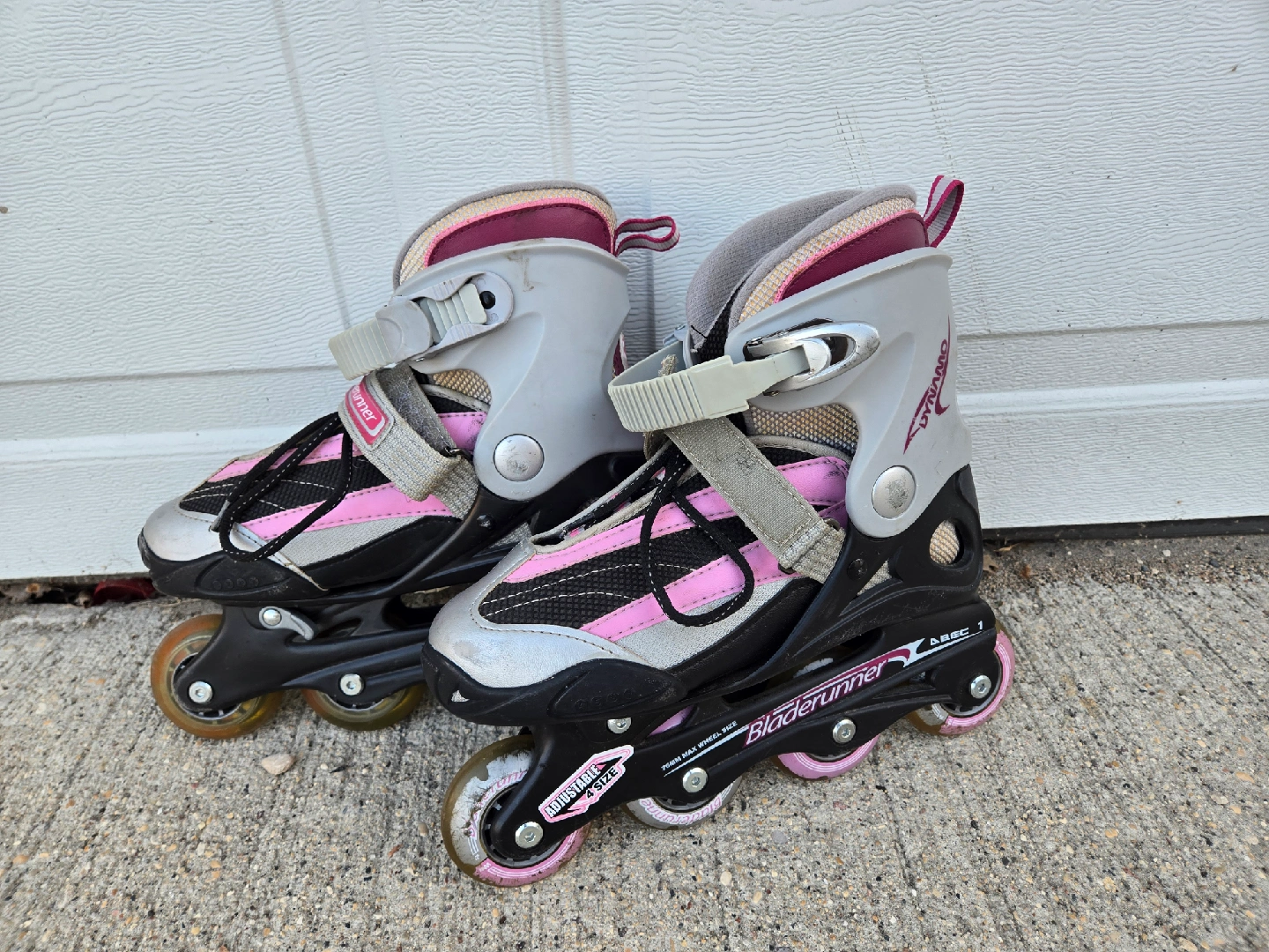 Selling a pair of Bladerunner Dynamo inline skates! They are in good condition and are adjustable, girls size 4-7. Perfect for someone just starting out or looking for a comfortable pair of skates for recreational use