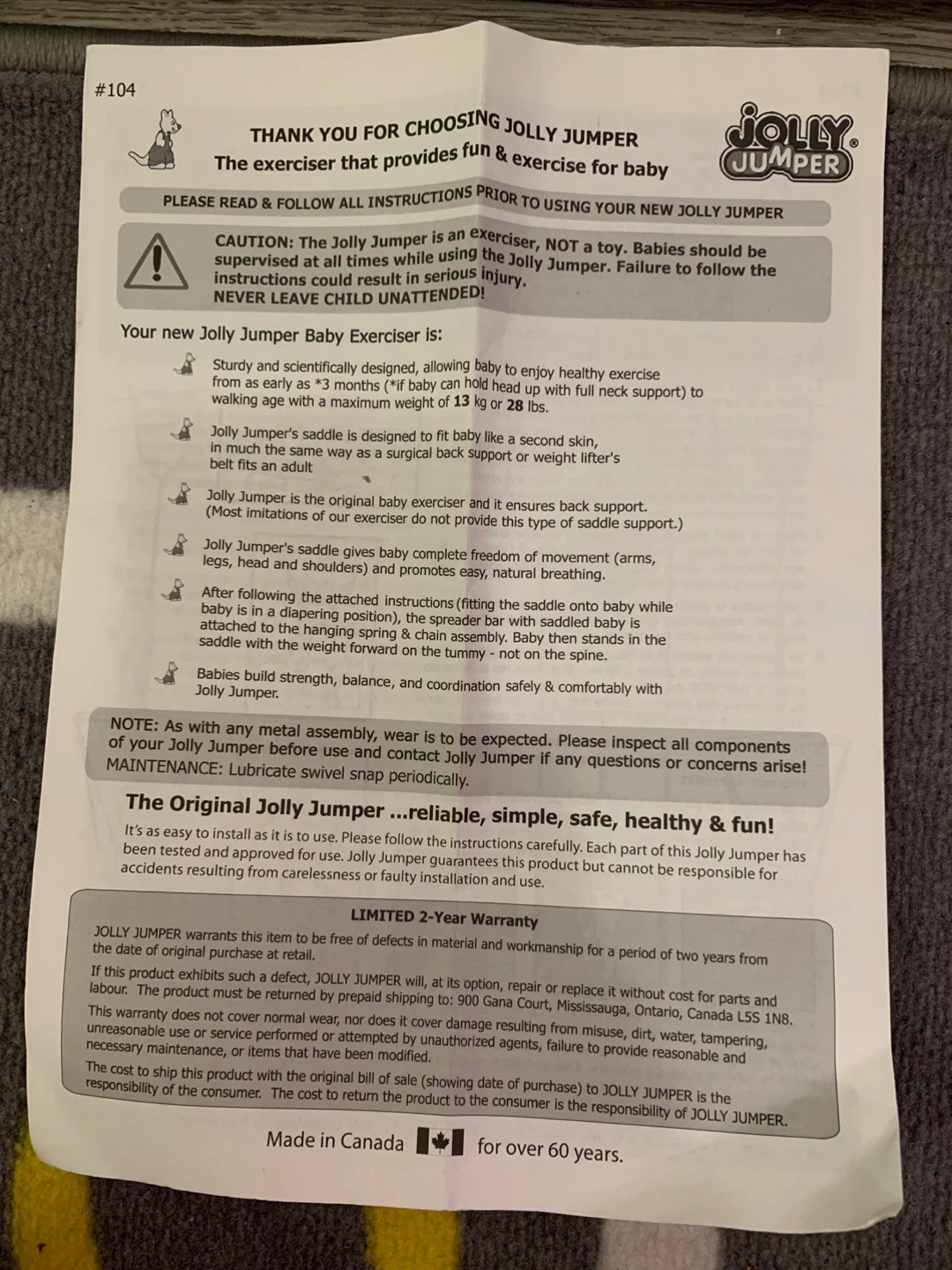 The Original Jolly Jumper Baby Exerciser, hangs securely on the door frame to save room. Perfect for condos, apartments. In excellent condition. Easy to install, comes with box and instructions for set up. Retails new for $49.99 Please pick up in RiverDistrict - Marine Drive and Boundary.