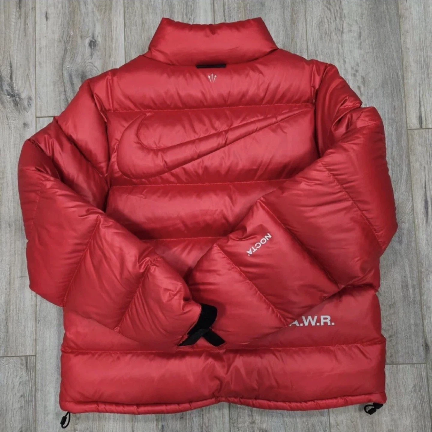 Selling a Nike x Drake NOCTA puffer jacket in red! It's a super stylish and warm jacket, perfect for the Canadian weather. The design is really eye-catching with the NOCTA branding and the A.W.R detail. Unworn with tags 🏷️ size Large