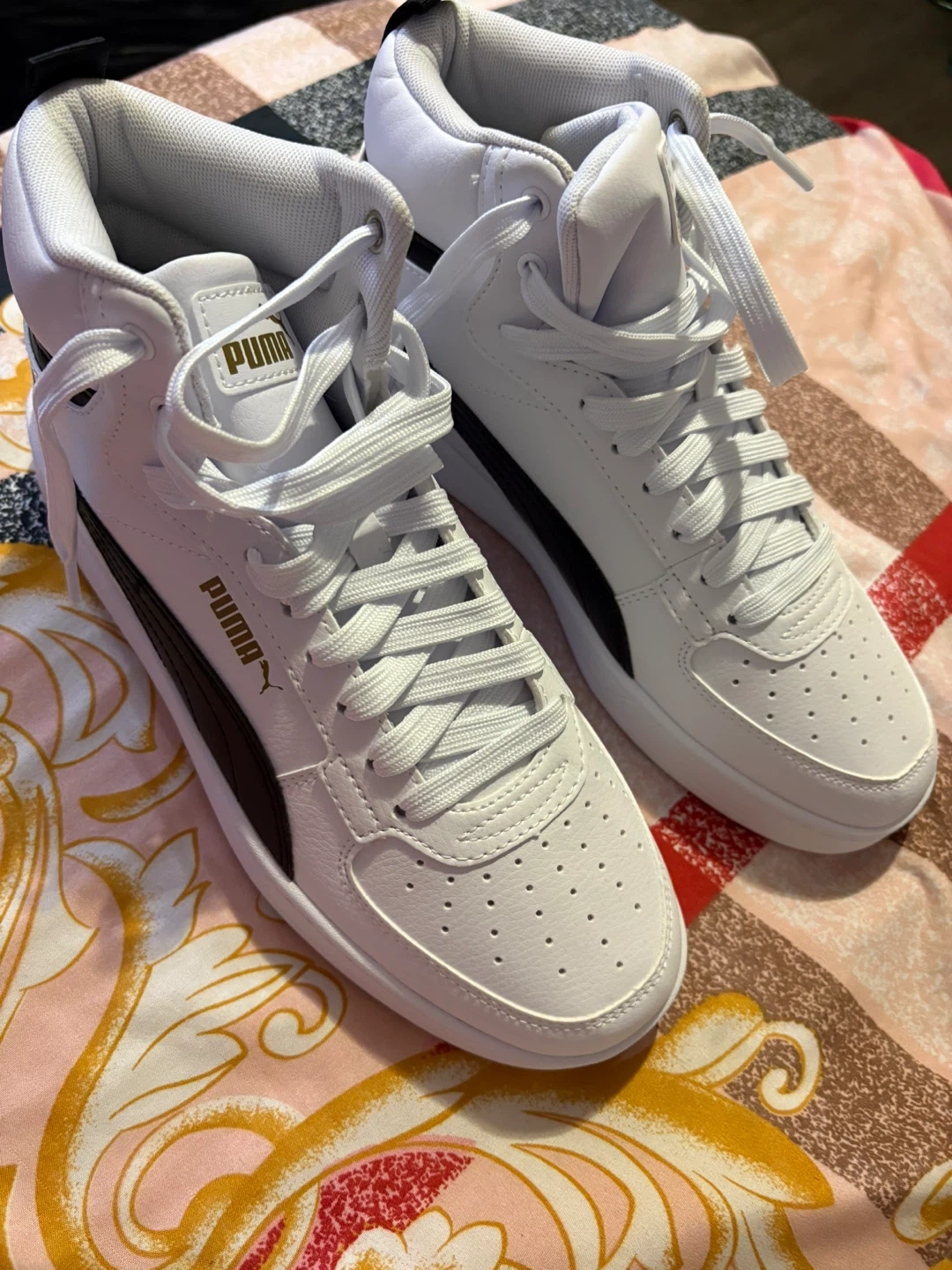 Selling a pair of Puma Rebound Joy high top sneakers in white. They are in great condition and ready for a new owner! The classic Puma style is always a good choice