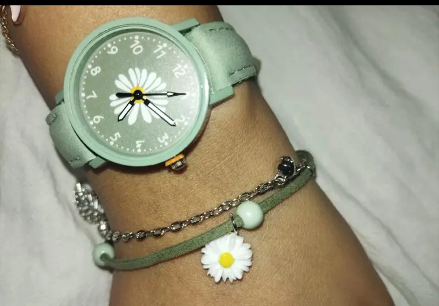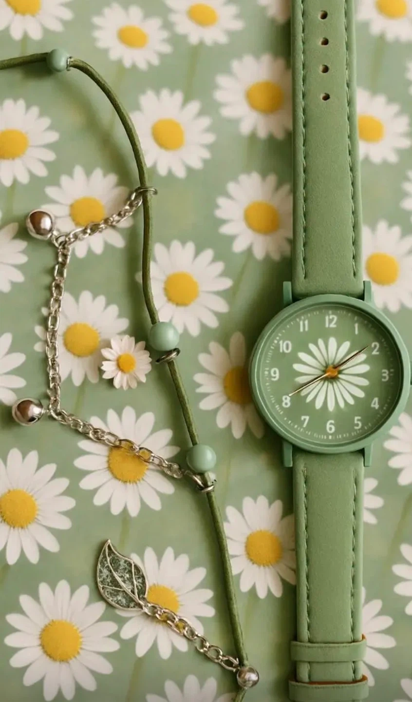 New Green Daisy Watch & Bracelet Set