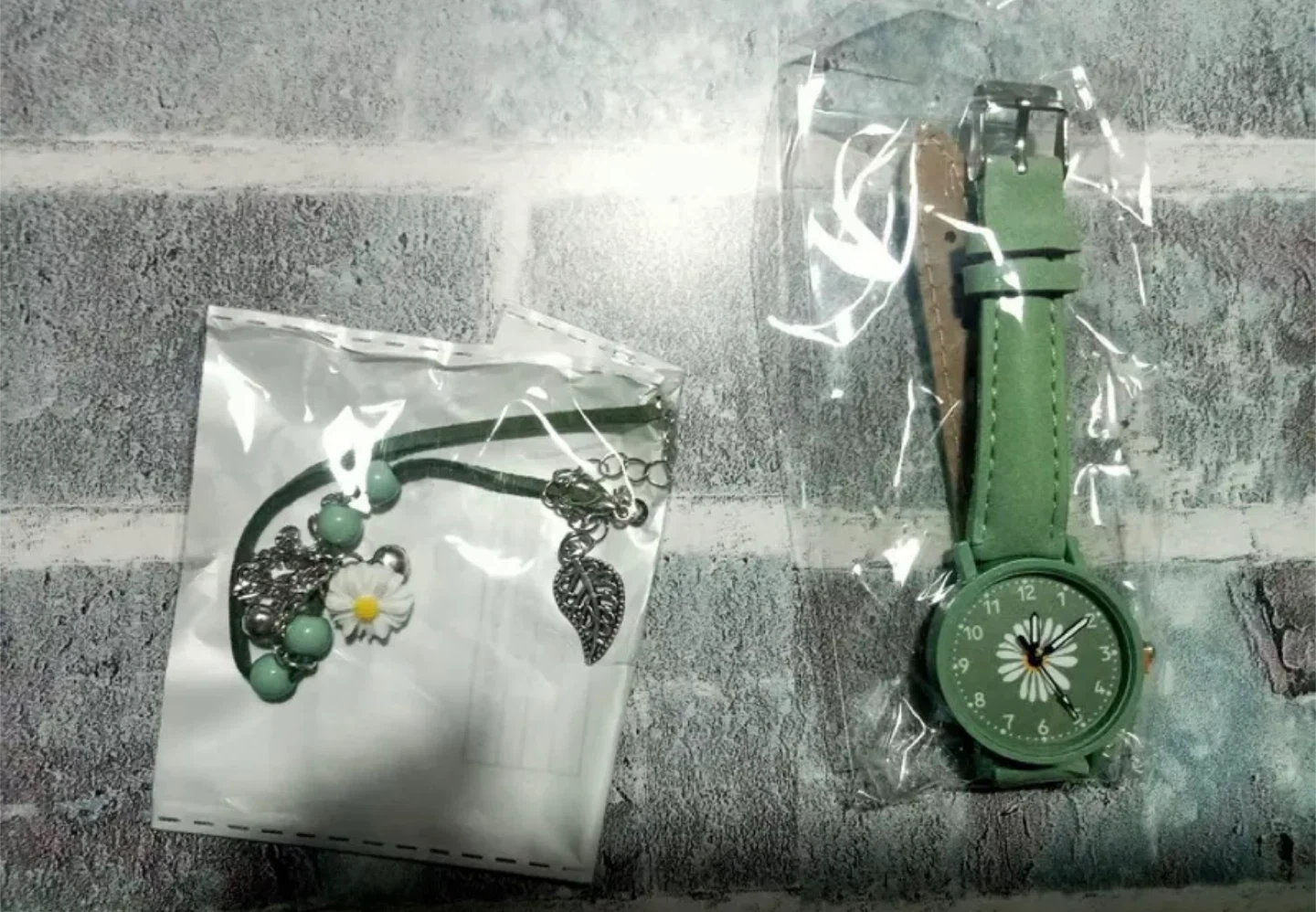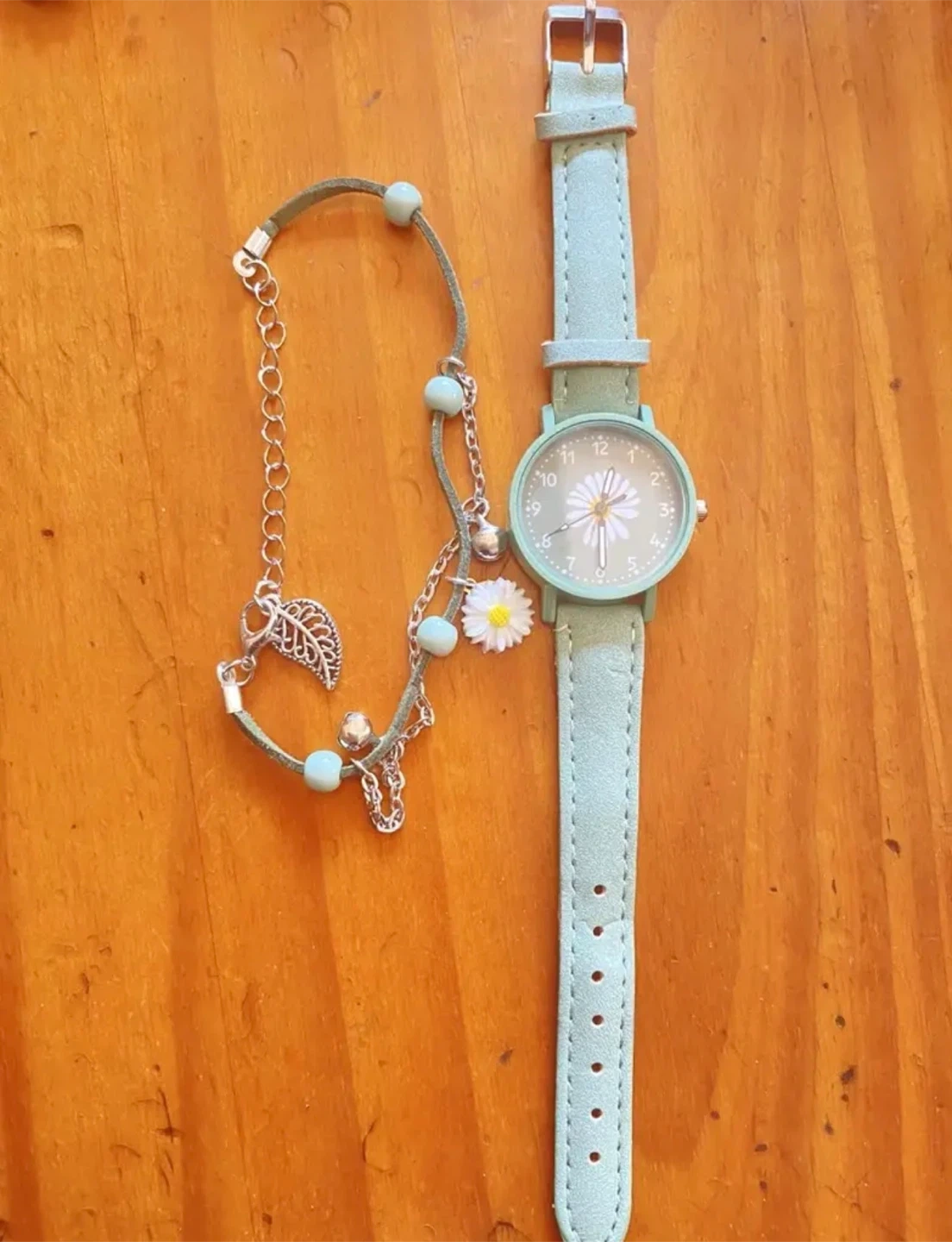 Selling a brand new, adorable green watch and bracelet set! The watch features a cute daisy design on the face, and the bracelet complements it perfectly. Both are still in their original packaging.