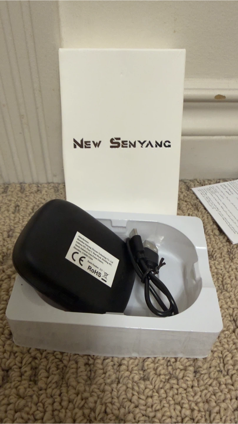 Selling a pair of New Senyang wireless earbuds. They come with their charging case and a USB charging cable. They look to be in great condition and ready for a new owner!