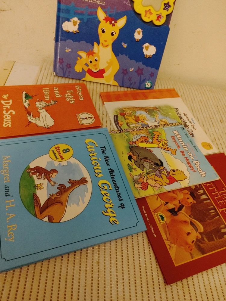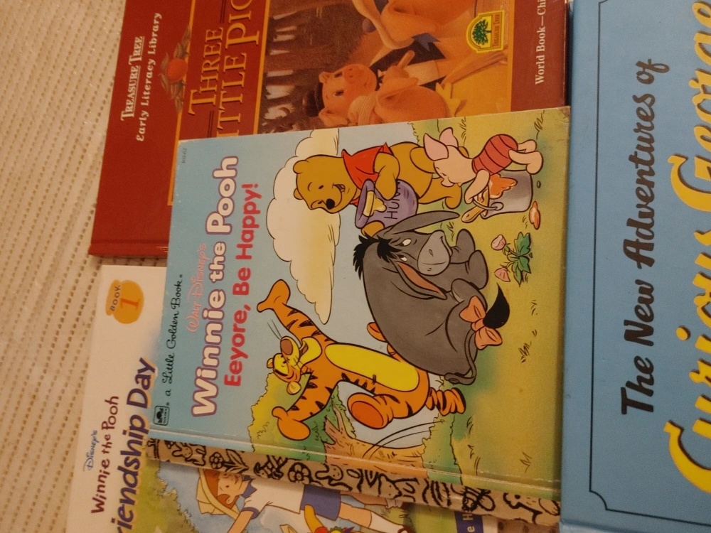 Selling a bundle of children's books! Includes: - The New Adventures of Curious George with 8 stories - Winnie the Pooh: Eeyore, Be Happy! - Green Eggs and Ham by Dr. Seuss - Three Little Pigs