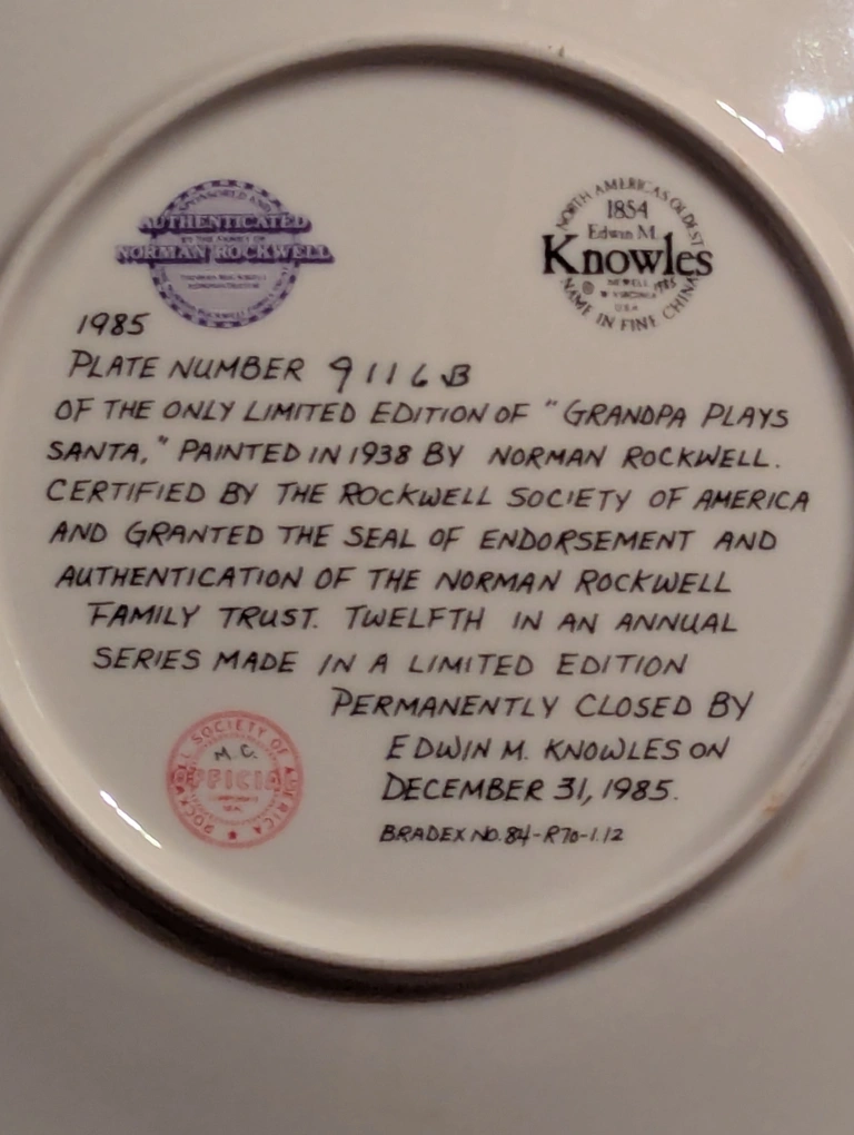 LIKE NEW vintage Norman Rockwell Christmas Plate 1985 "Grandpa Plays Santa" Knowles